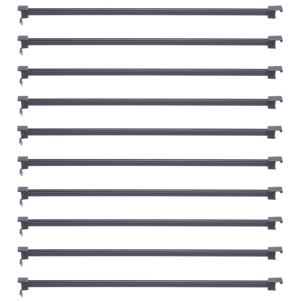 Uppgradera din garderob med vår smarta upphängningslösning för byxor som erbjuder enkel åtkomst till 10 par byxor/kjolar. Den innovativa uppsättningen aluminiumstänger har en gummiremsa på ovansidan, vilket säkerställer att dina kläder förblir på plats och inte skrynklas. Monteringen är enkel - stängerna fästs enkelt i en Garage+/Décor+ glidram, där förmonterade gummipads håller dem positionerade på plats. Njut av enkel åtkomst till dina byxor och kjolar med detta platsbesparande och funktionella tillskott.
