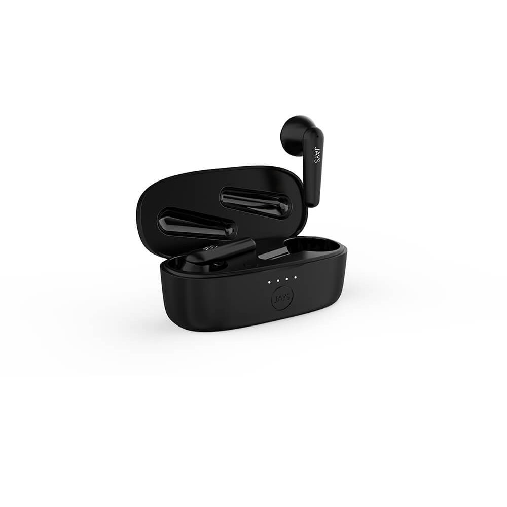 T-Six är optimerad för användning hela dagen och erbjuder låg strömförbrukning för att stödja din lyssningsupplevelse när du behöver det som mest. Spela dina favoritspellistor, podcaster och ta emot samtal med upp till 6 timmars batteri på en enda laddning. När du behöver en laddning, placera helt enkelt T-Six i det eleganta laddningsfodralet i fickstorlek. En full laddning tar bara 1,5h. Själva fodralet laddas med USB-C vilket möjliggör en snabb laddning. En full laddning bara tar 1,5h även för fodralet. I kartongen hittar du JAYS Headphones t-Six TWS, laddningsfodral och en laddningskabel.