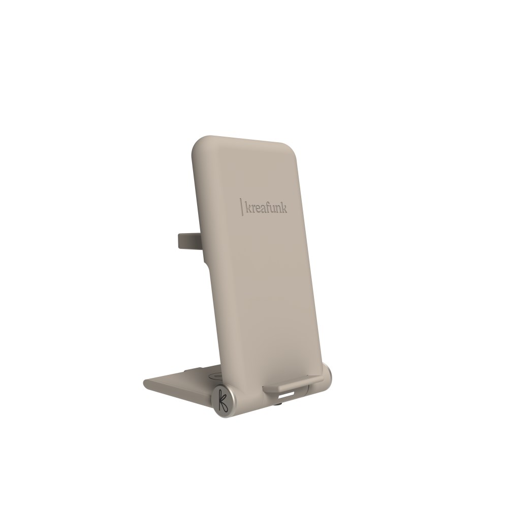 reCHARGE+ är en stående snabbladdare med plats för tre Qi-kompatibla enheter så att du kan ladda mobilen, hörlurarna och smartklockan samtidigt. Mobilen lutar du smidigt på laddarens framsida. Den övre laddaren på baksidan fungerar endast för Apple Watch, övriga Qi-klockor kan laddas på den nedre laddningsytan. Laddaren är vikbar så att du lätt kan ta med dig den vart du än går.