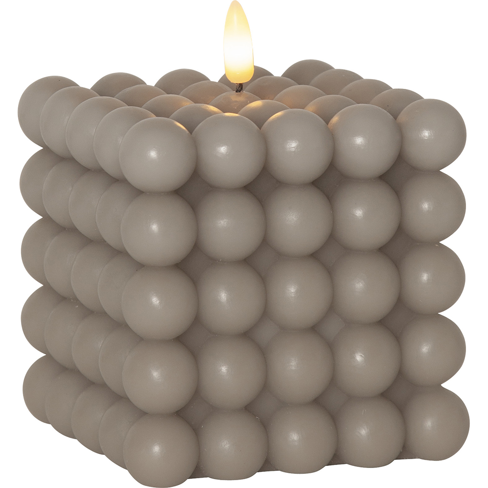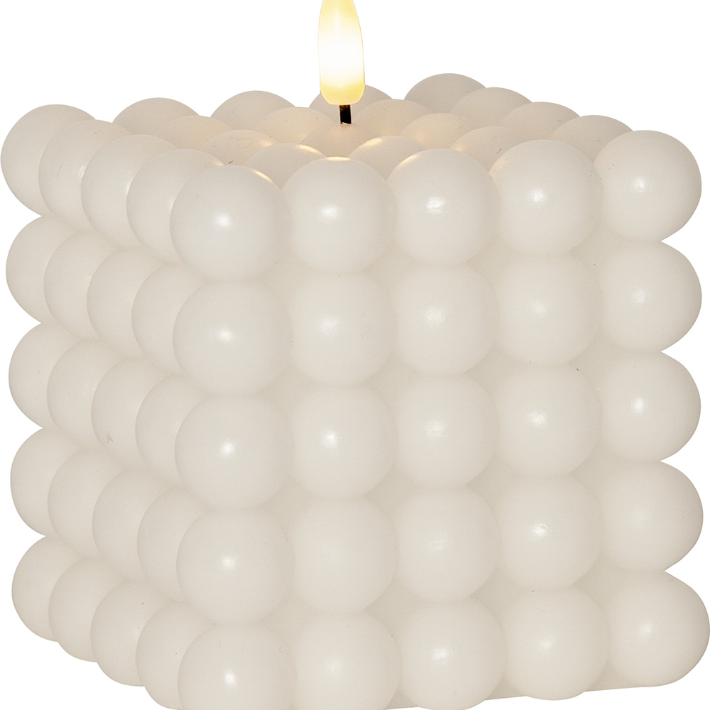 Flamme Dot är ett fyrkantigt ljus gjord av vax med en bubblig yta.
