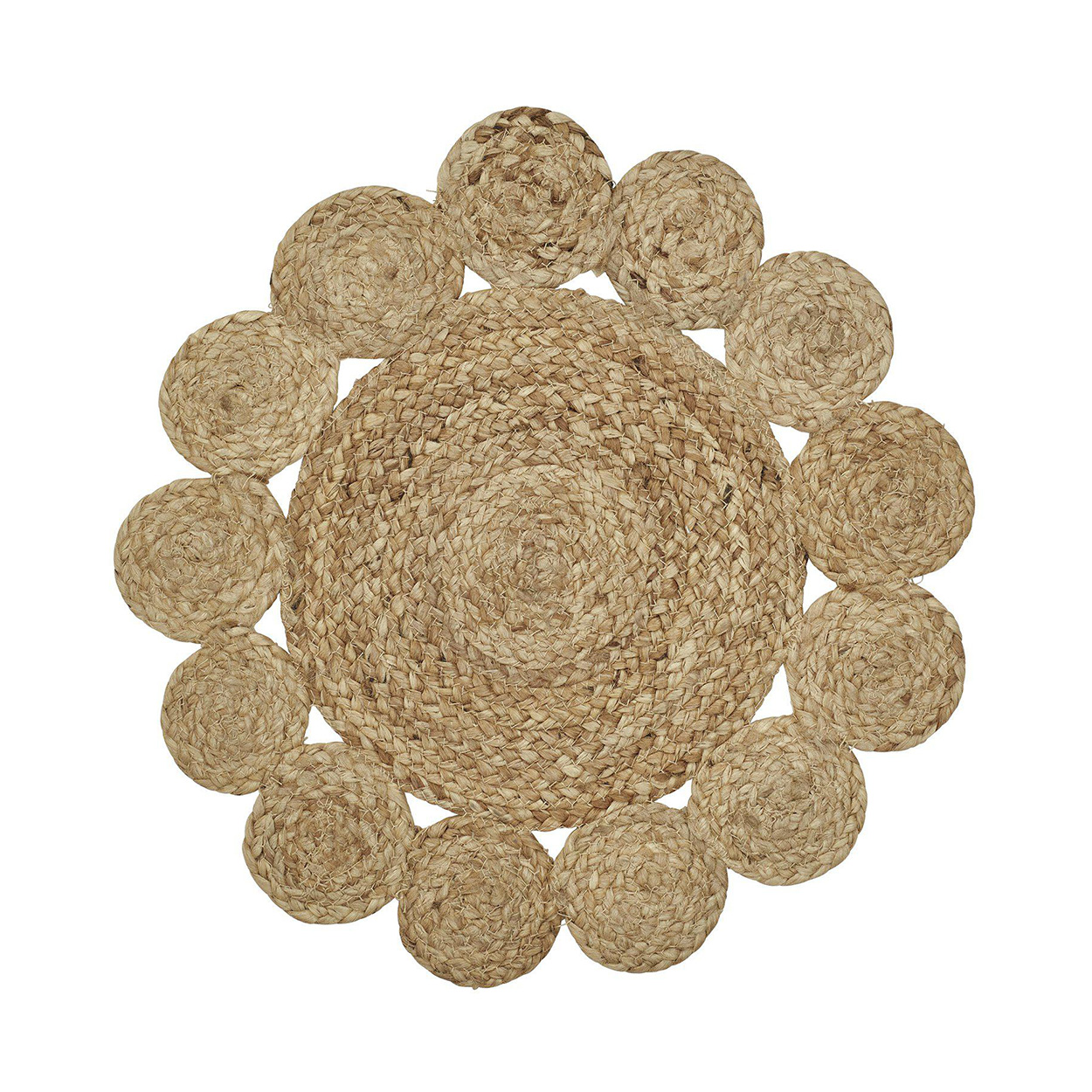 En rund bordstablett i flätat jute som skapar en ombonad känsla vid det dukade bordet. Mått ca 40cm. Tabletten kan ej tvättas, utan torkas av med fuktig trasa. Då den är gjord av naturmaterial kan vissa nyansskillnader förekomma.
