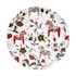 Rund bricka från Arvidssons Textil. Svenskdesignat mönster av Carola Bengtsson-Malmström. Med dalahästar och kurbitsmotiv i glada färger. Tillverkad i Sverige.