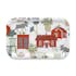 Bricka Strövtåg från Arvidssons Textil. Svenskdesignat mönster med röda stugor, älgar och blommor. Tillverkad i Sverige