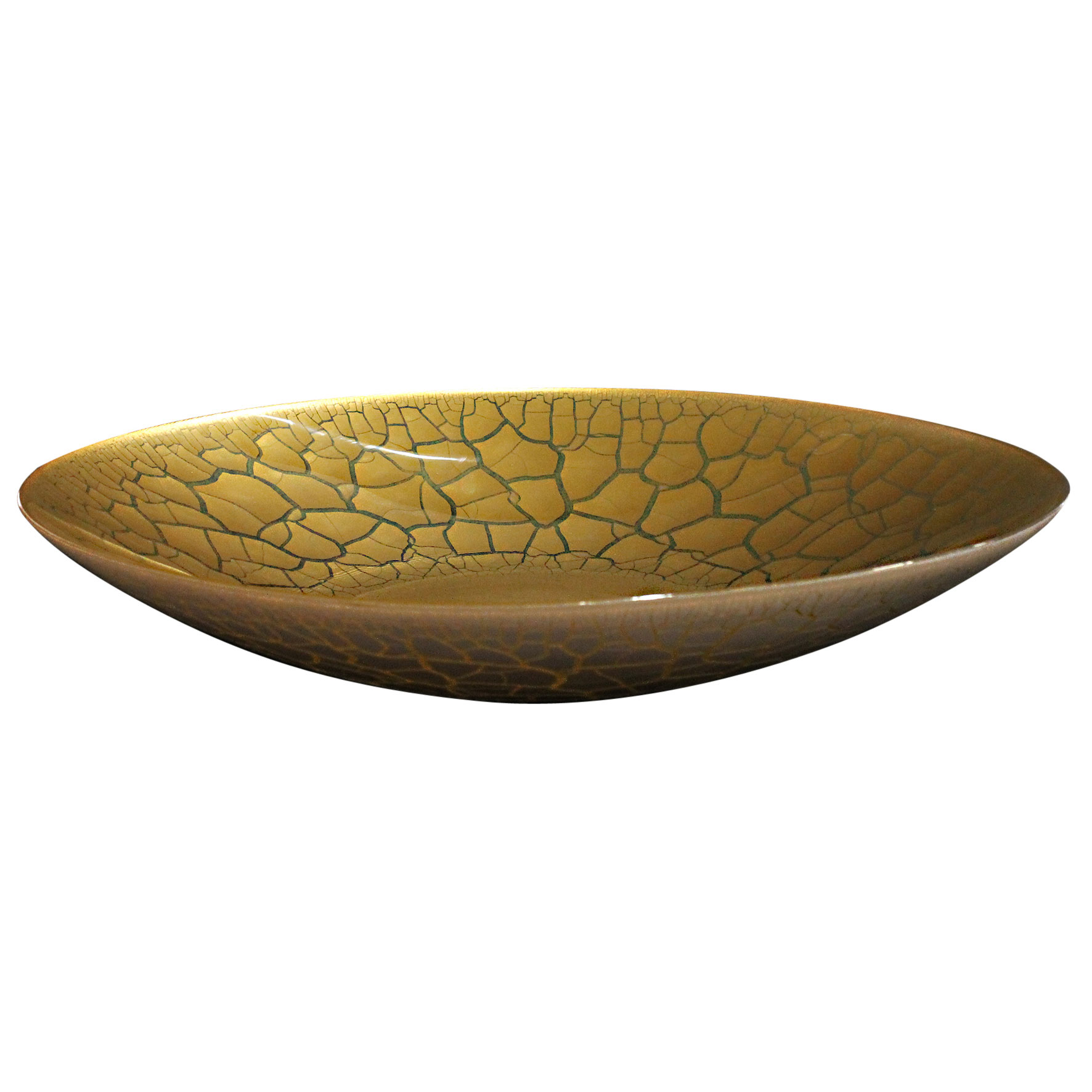 Ett iögonfallande fat från serien Croco. Med ett skapat mönster av krakelerad effekt skapas en vacker unik och dekorativ pjäs när färgerna reagerar mot varandra. Ett vackert dekorativt fat som gör sig sig perfekt med frukt i och drar blickarna till sig var den än placeras.
