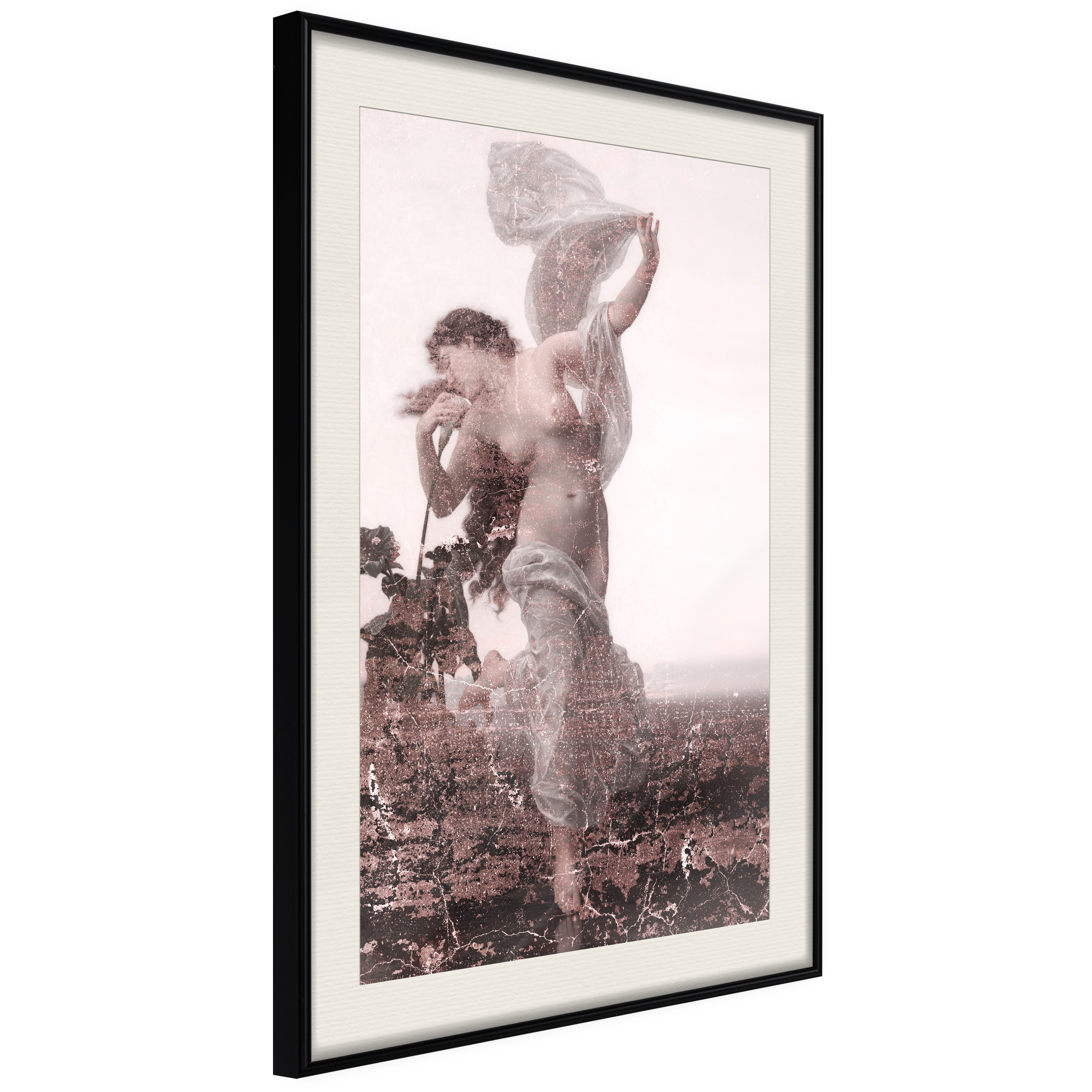 Passepartouten i écru betonar färgern på affischen och skapar en extra kontrast mellan grafiken, ramen och väggen. Dessutom ger den ramen ett svagt tredimensionellt intryck och fungerar även som ett skyddslager som ytterligare skyddar afischen. Affischen är säkrad med akrylglas och en hänganordning finns på ramens baksida.