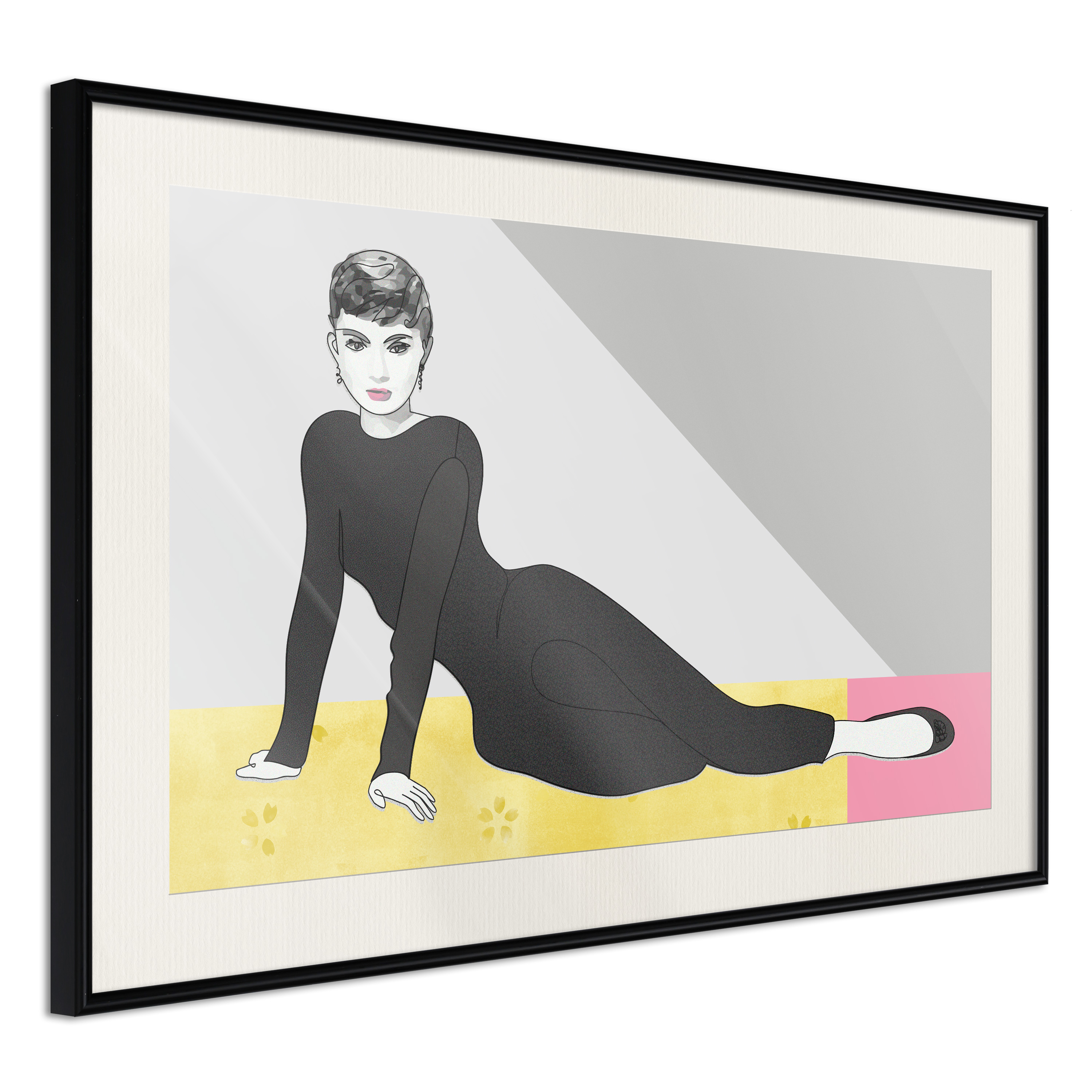Passepartouten i écru betonar färgern på affischen och skapar en extra kontrast mellan grafiken, ramen och väggen. Dessutom ger den ramen ett svagt tredimensionellt intryck och fungerar även som ett skyddslager som ytterligare skyddar afischen. Affischen är säkrad med akrylglas och en hänganordning finns på ramens baksida.