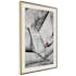 Passepartouten i écru betonar färgern på affischen och skapar en extra kontrast mellan grafiken, ramen och väggen. Dessutom ger den ramen ett svagt tredimensionellt intryck och fungerar även som ett skyddslager som ytterligare skyddar afischen. Affischen är säkrad med akrylglas och en hänganordning finns på ramens baksida.