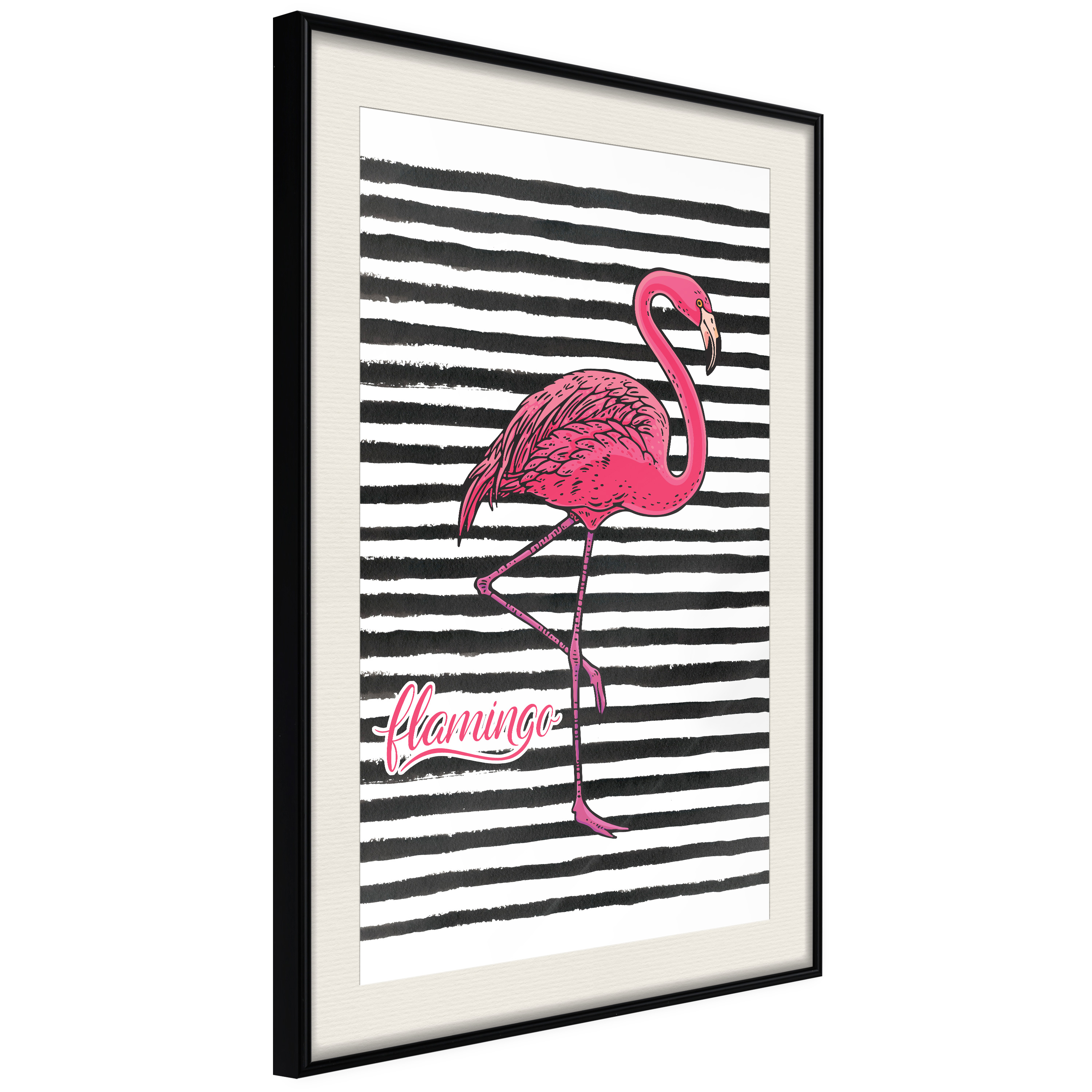 Poster ArtgeistAffisch Black Stripes and FlamingoSvart ram, 20x30 cm