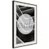 Affischen är inramad i en minimalistisk, lätt ram som gör den mer synlig mot väggen. Affischen är säkrad med akrylglas och en hänganordning finns på ramens baksida.