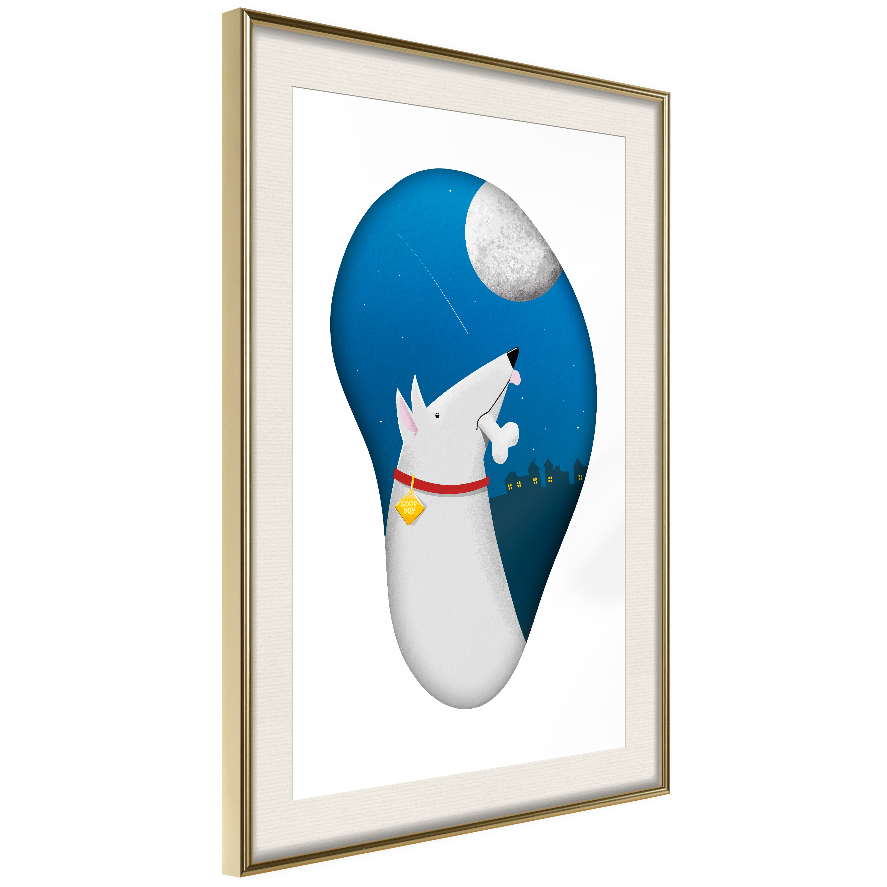 Affischen är inramad i en minimalistisk, lätt ram som gör den mer synlig mot väggen. Affischen är säkrad med akrylglas och en hänganordning finns på ramens baksida.