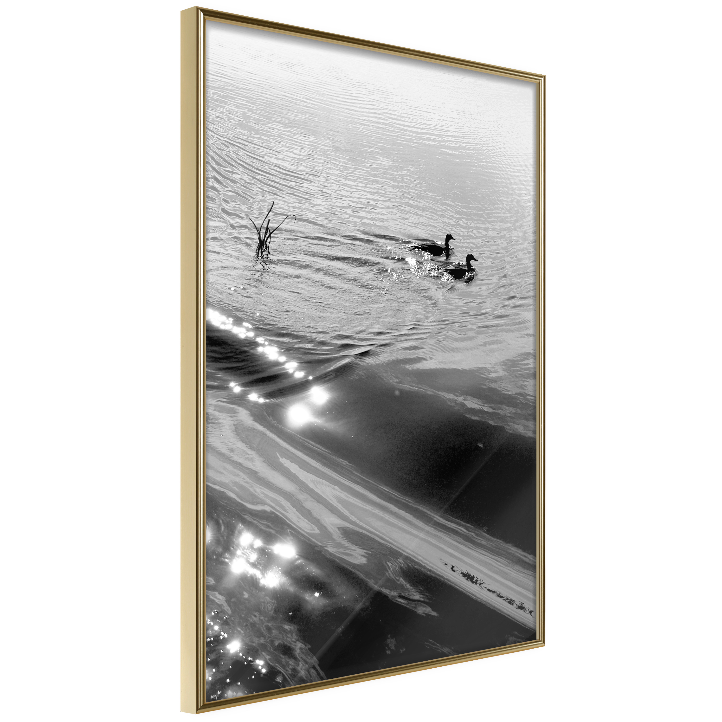 Affischen är inramad i en minimalistisk, lätt ram som gör den mer synlig mot väggen. Affischen är säkrad med akrylglas och en hänganordning finns på ramens baksida.