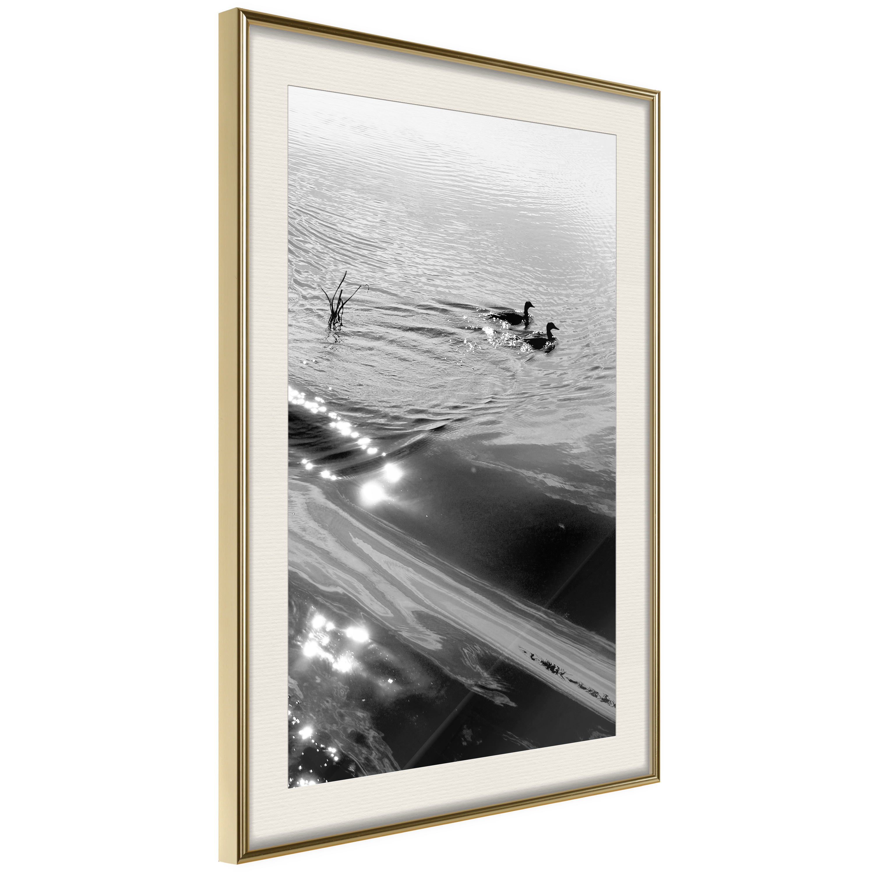 Passepartouten i écru betonar färgern på affischen och skapar en extra kontrast mellan grafiken, ramen och väggen. Dessutom ger den ramen ett svagt tredimensionellt intryck och fungerar även som ett skyddslager som ytterligare skyddar afischen. Affischen är säkrad med akrylglas och en hänganordning finns på ramens baksida.