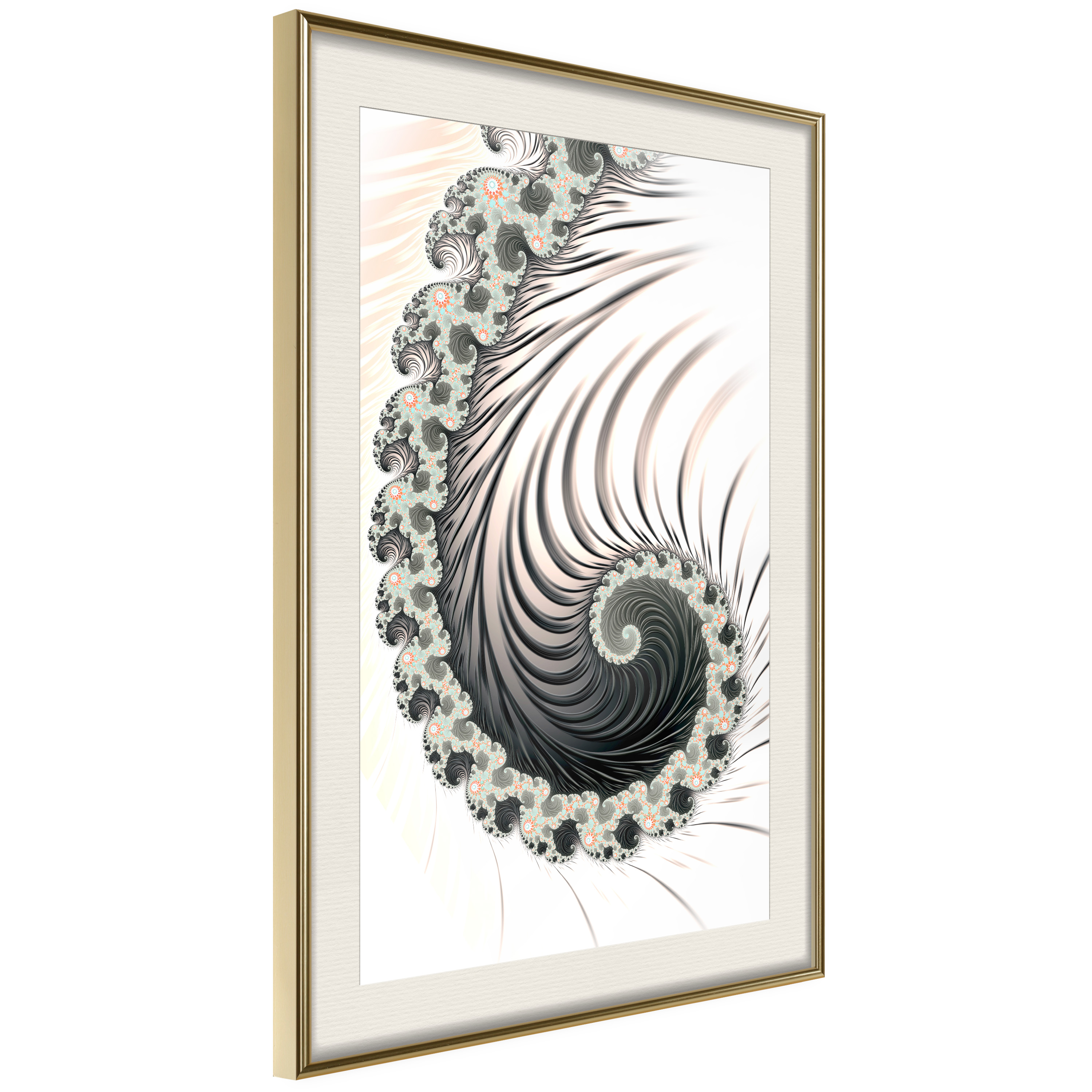 Passepartouten i écru betonar färgern på affischen och skapar en extra kontrast mellan grafiken, ramen och väggen. Dessutom ger den ramen ett svagt tredimensionellt intryck och fungerar även som ett skyddslager som ytterligare skyddar afischen. Affischen är säkrad med akrylglas och en hänganordning finns på ramens baksida.