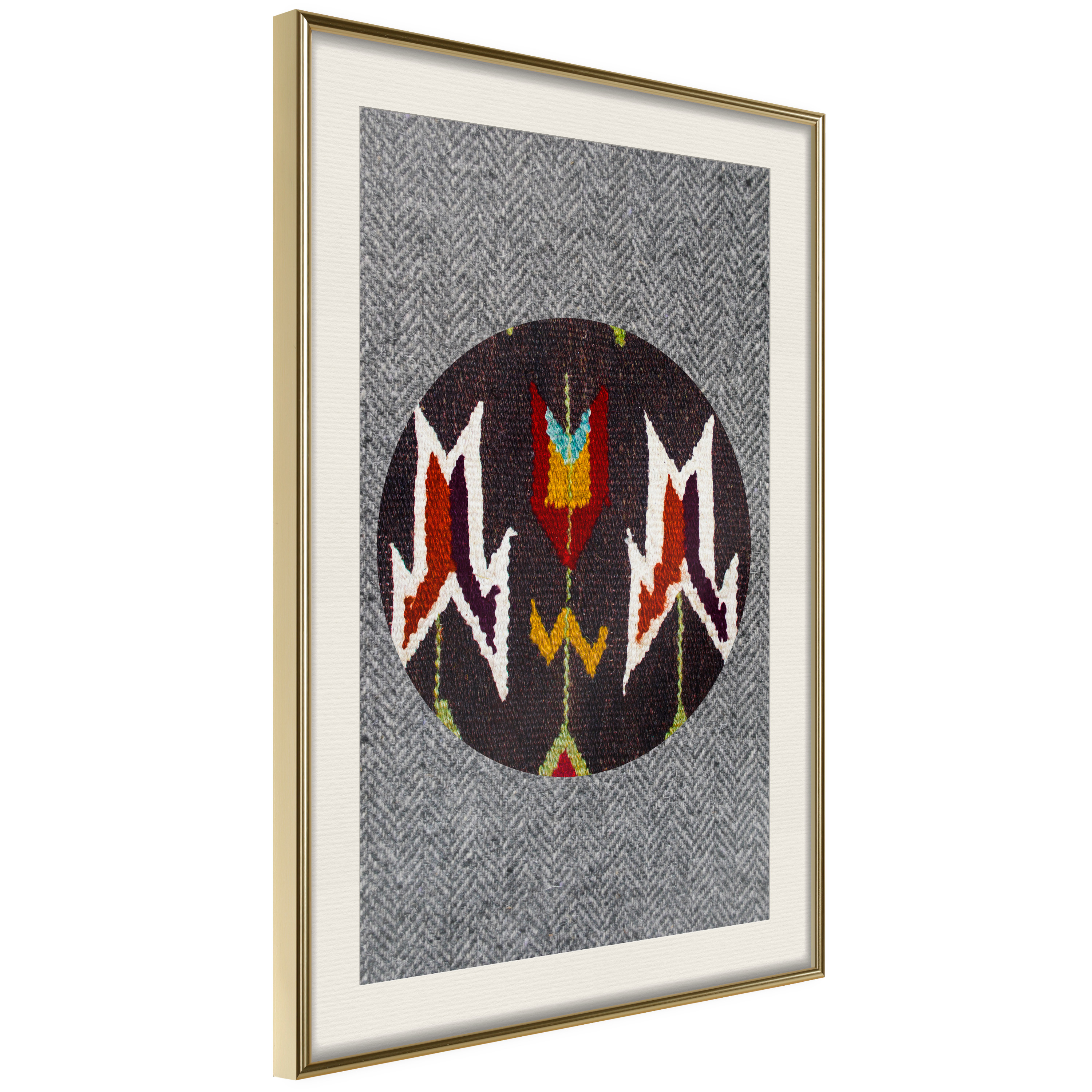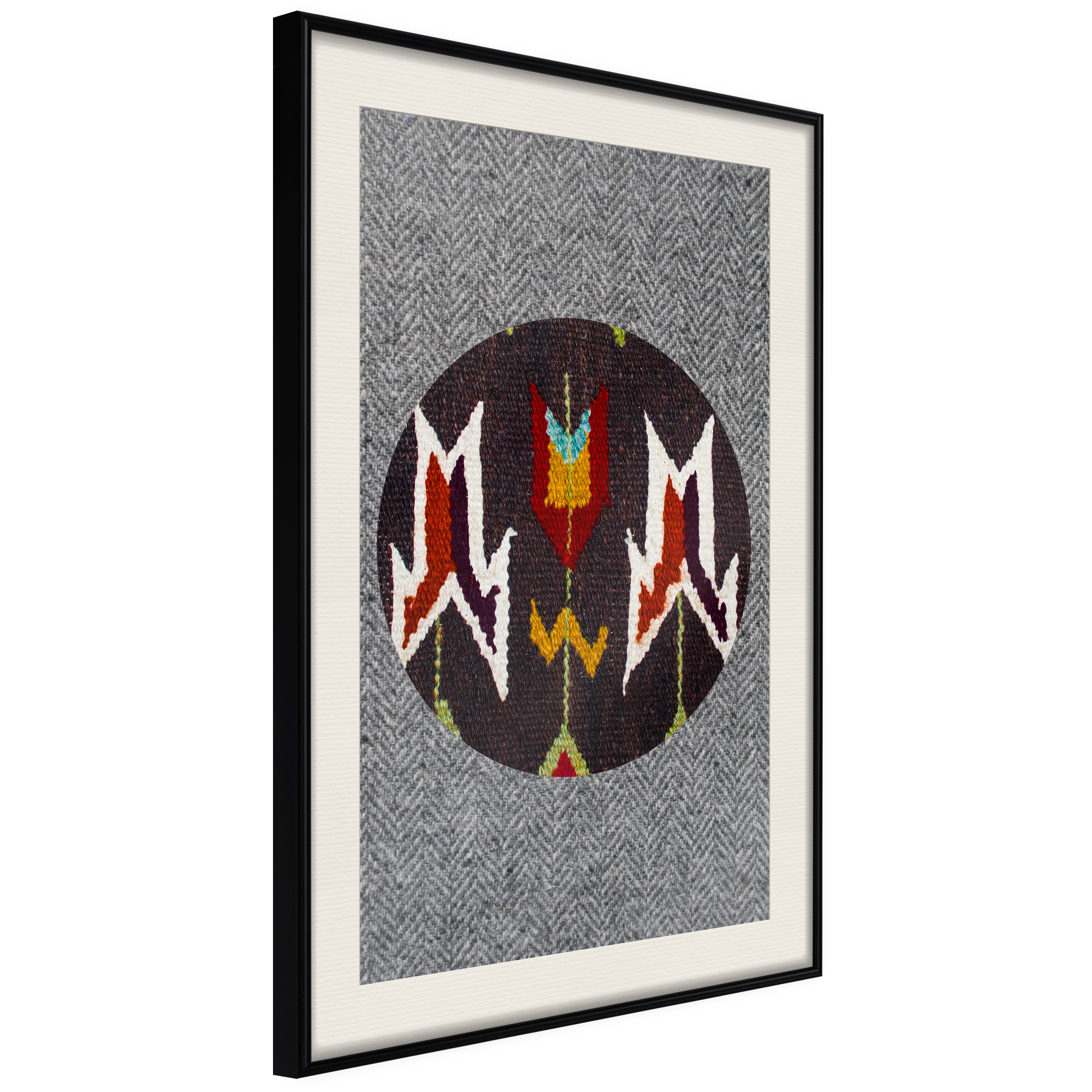Passepartouten i écru betonar färgern på affischen och skapar en extra kontrast mellan grafiken, ramen och väggen. Dessutom ger den ramen ett svagt tredimensionellt intryck och fungerar även som ett skyddslager som ytterligare skyddar afischen. Affischen är säkrad med akrylglas och en hänganordning finns på ramens baksida.