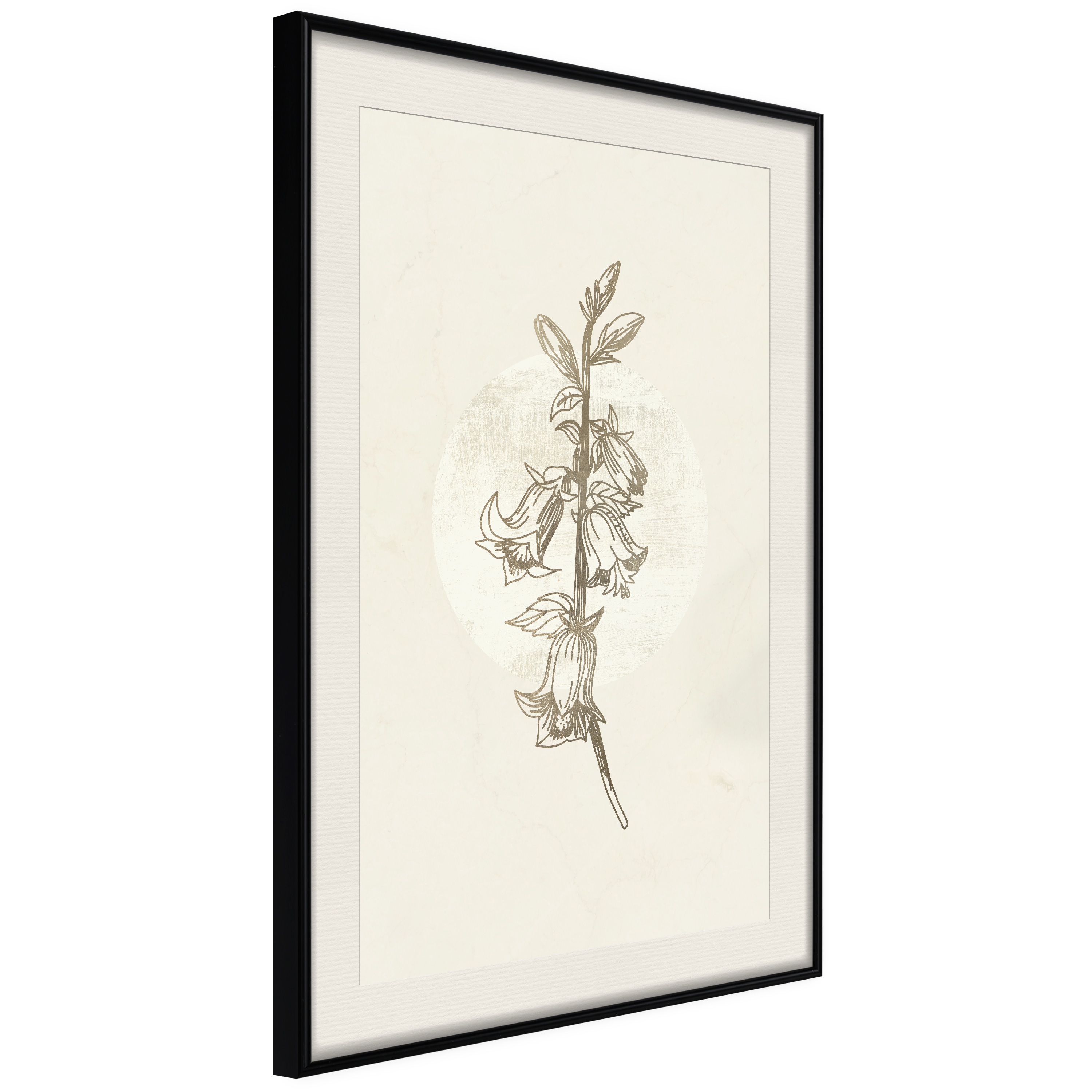 Passepartouten i écru betonar färgern på affischen och skapar en extra kontrast mellan grafiken, ramen och väggen. Dessutom ger den ramen ett svagt tredimensionellt intryck och fungerar även som ett skyddslager som ytterligare skyddar afischen. Affischen är säkrad med akrylglas och en hänganordning finns på ramens baksida.