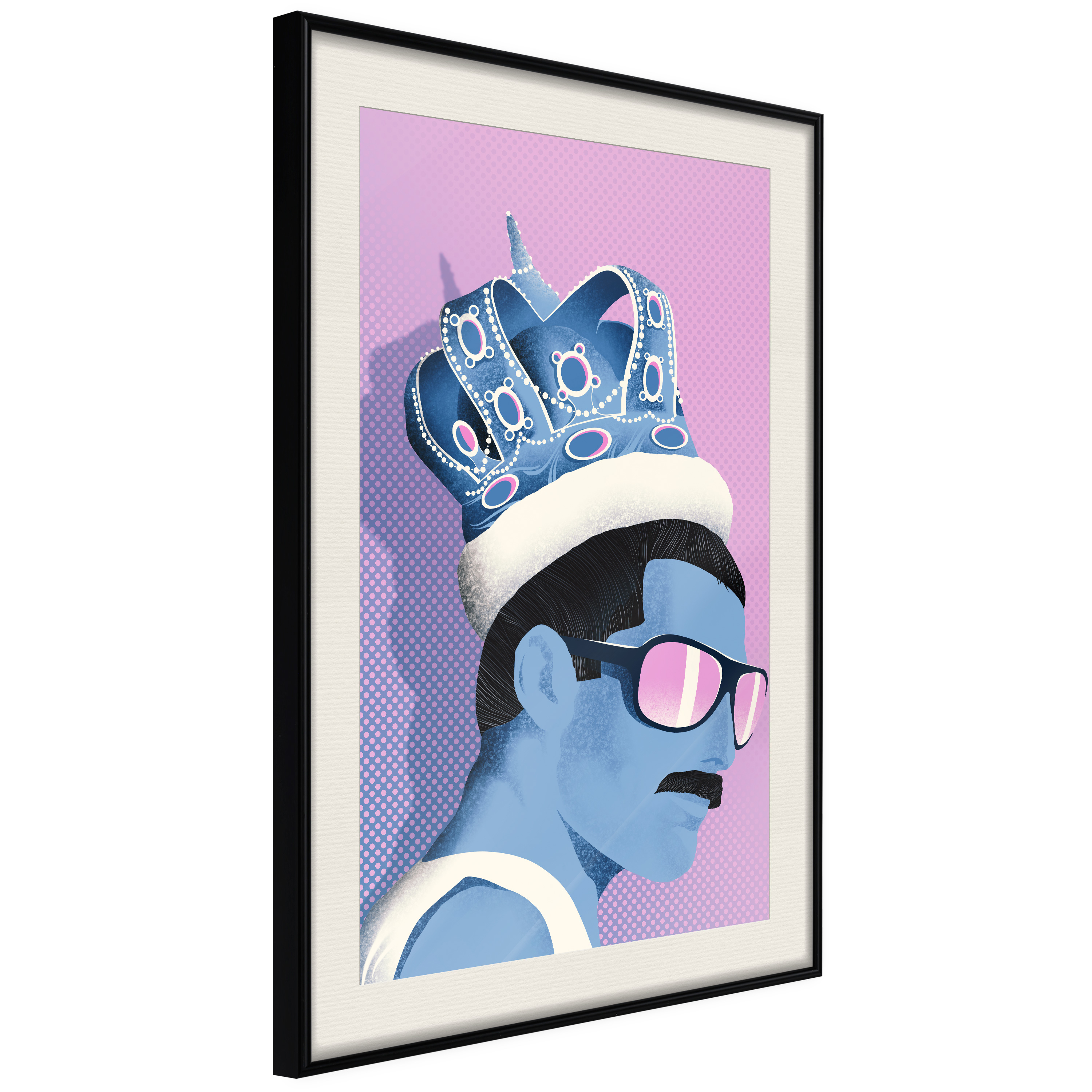 Passepartouten i écru betonar färgern på affischen och skapar en extra kontrast mellan grafiken, ramen och väggen. Dessutom ger den ramen ett svagt tredimensionellt intryck och fungerar även som ett skyddslager som ytterligare skyddar afischen. Affischen är säkrad med akrylglas och en hänganordning finns på ramens baksida.