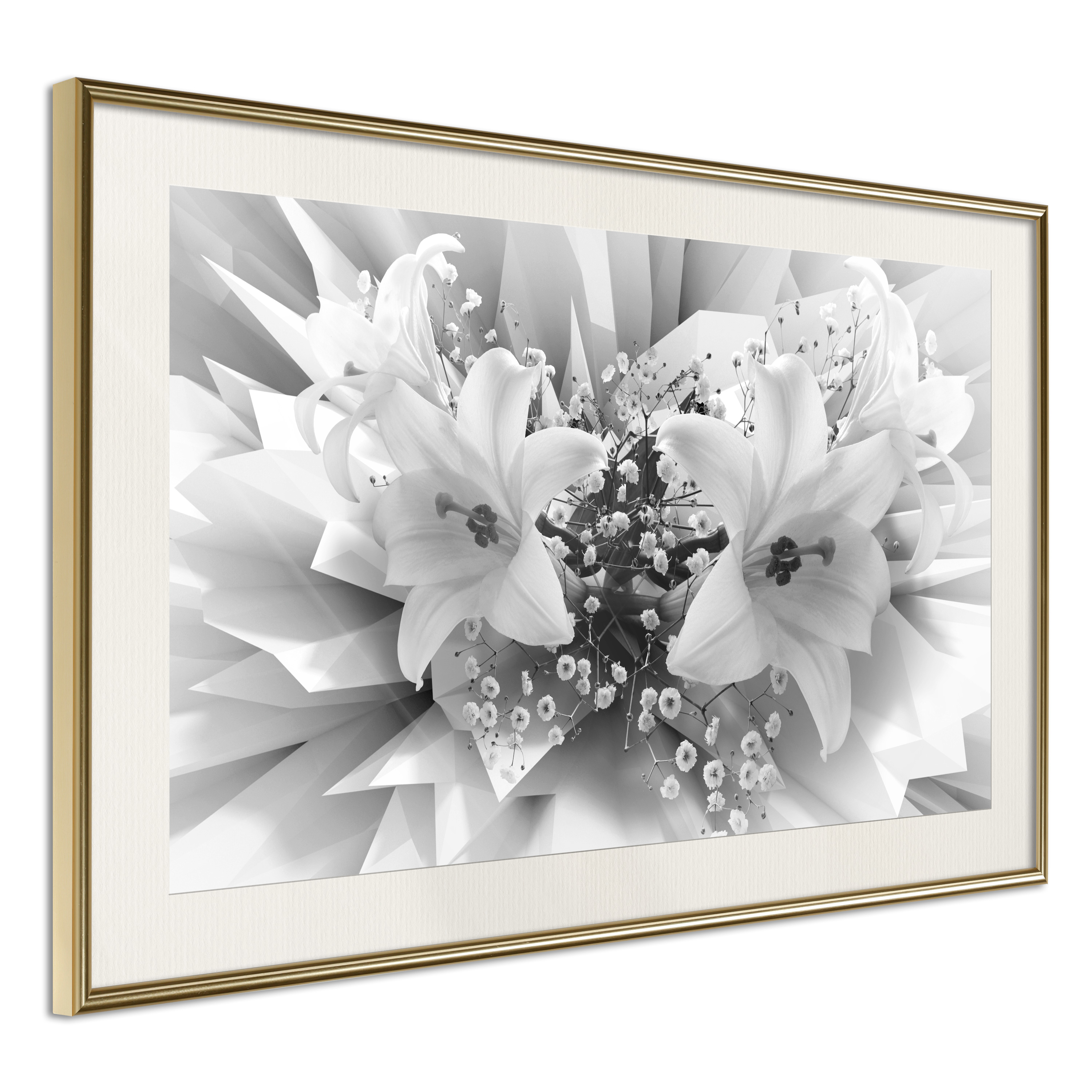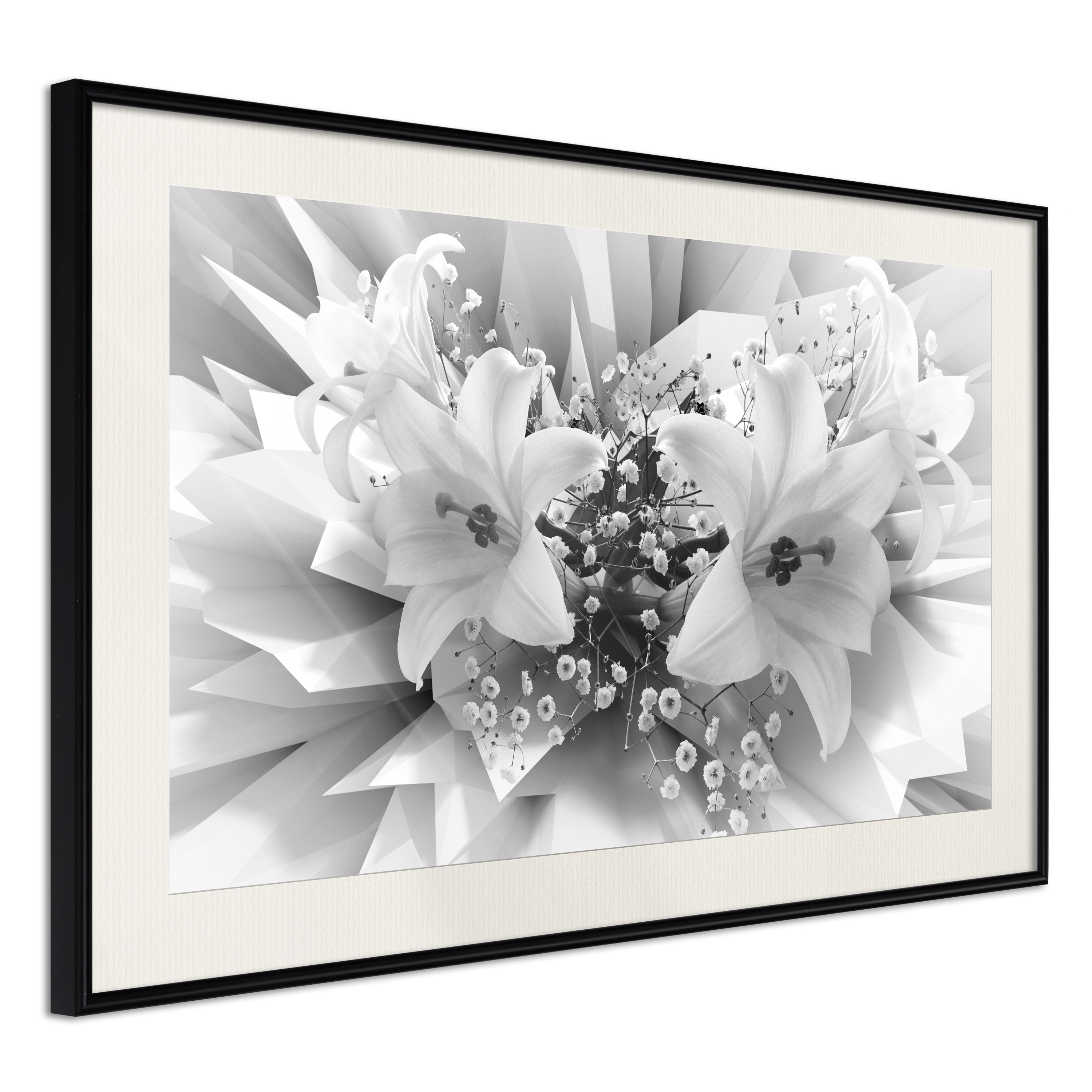 Passepartouten i écru betonar färgern på affischen och skapar en extra kontrast mellan grafiken, ramen och väggen. Dessutom ger den ramen ett svagt tredimensionellt intryck och fungerar även som ett skyddslager som ytterligare skyddar afischen. Affischen är säkrad med akrylglas och en hänganordning finns på ramens baksida.