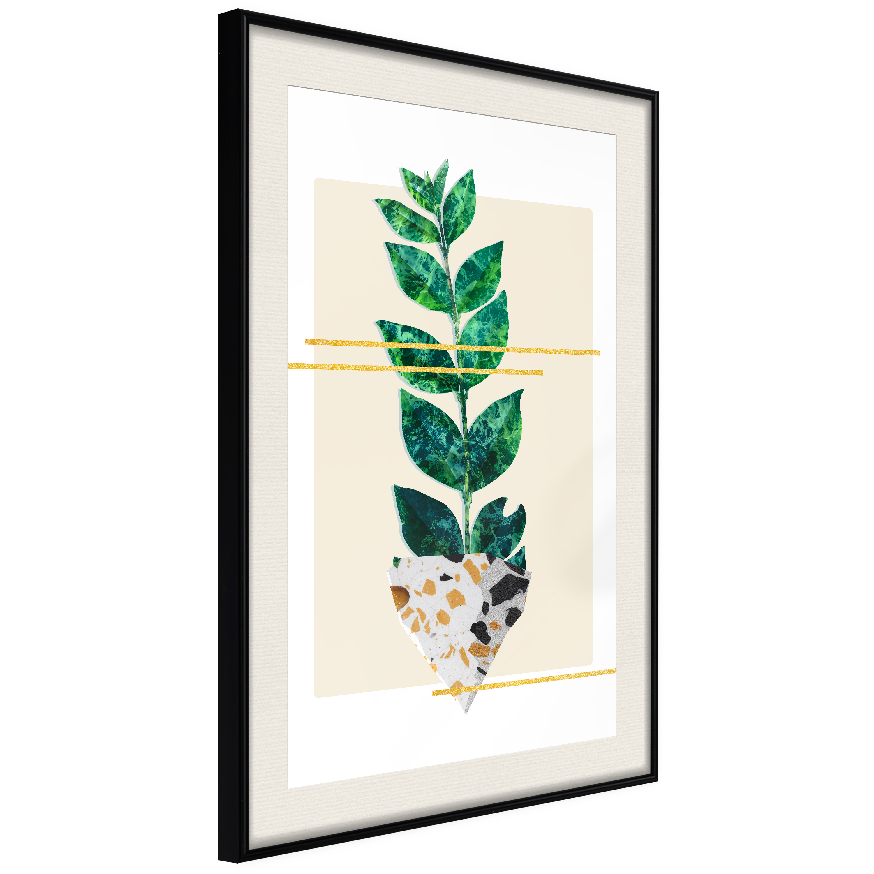 Passepartouten i écru betonar färgern på affischen och skapar en extra kontrast mellan grafiken, ramen och väggen. Dessutom ger den ramen ett svagt tredimensionellt intryck och fungerar även som ett skyddslager som ytterligare skyddar afischen. Affischen är säkrad med akrylglas och en hänganordning finns på ramens baksida.