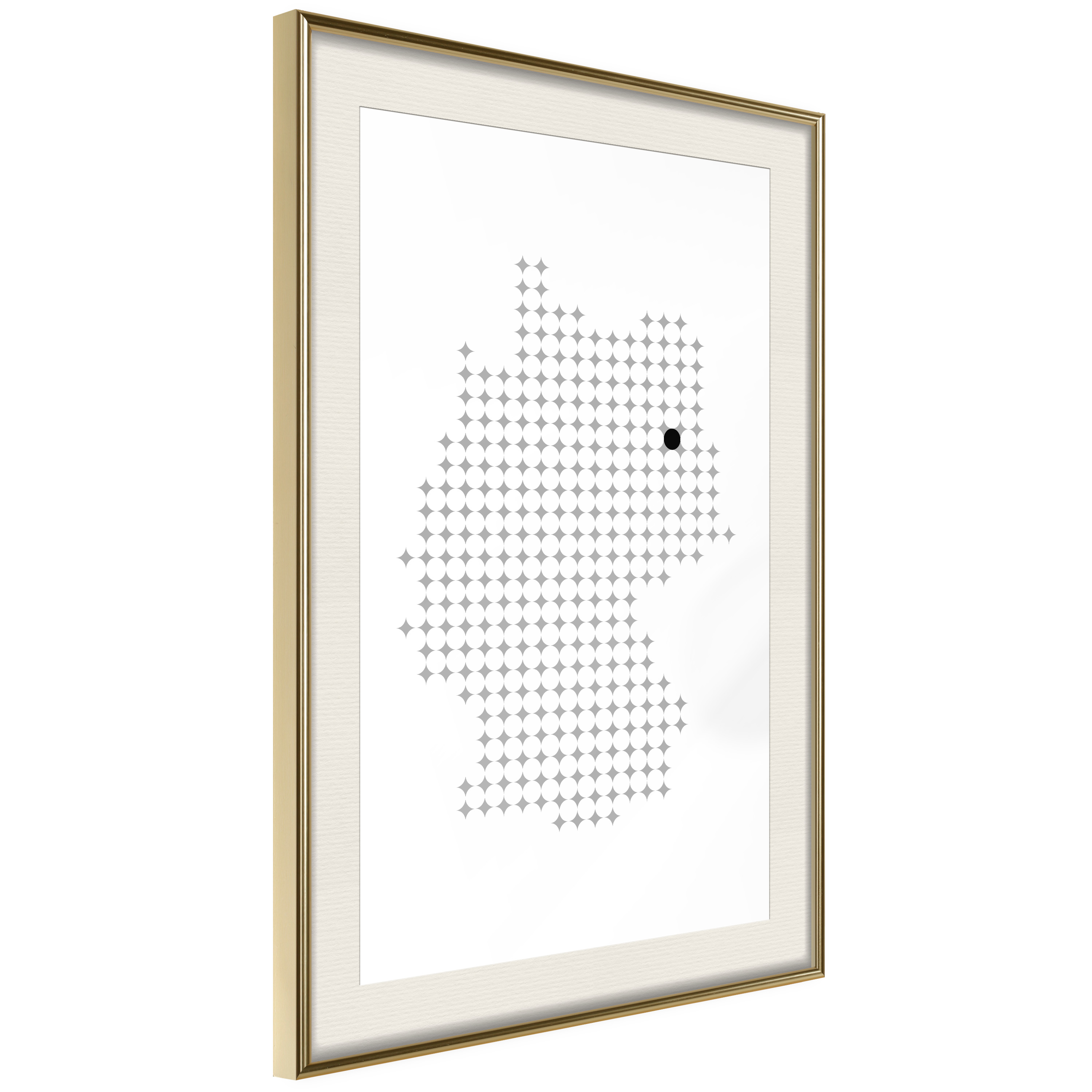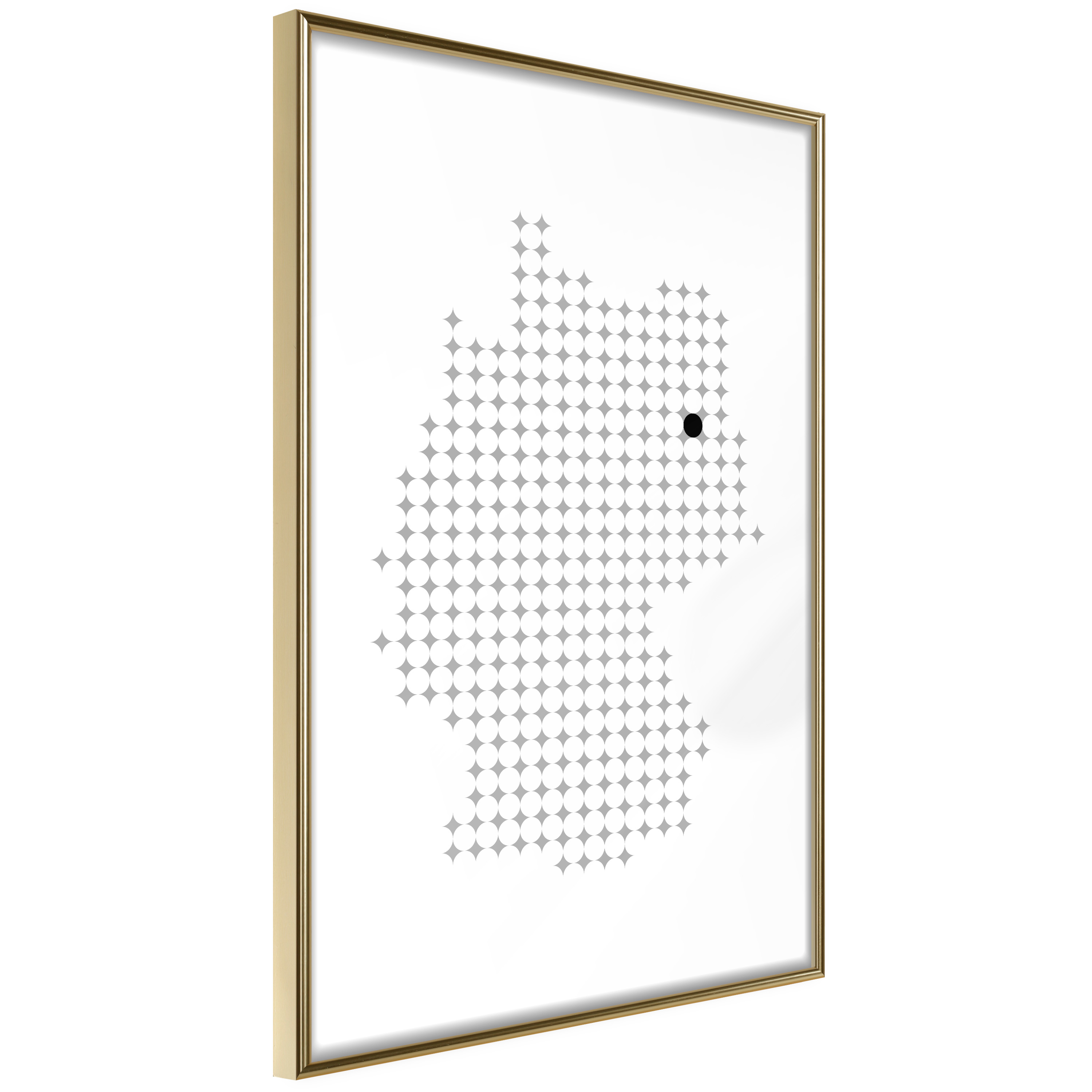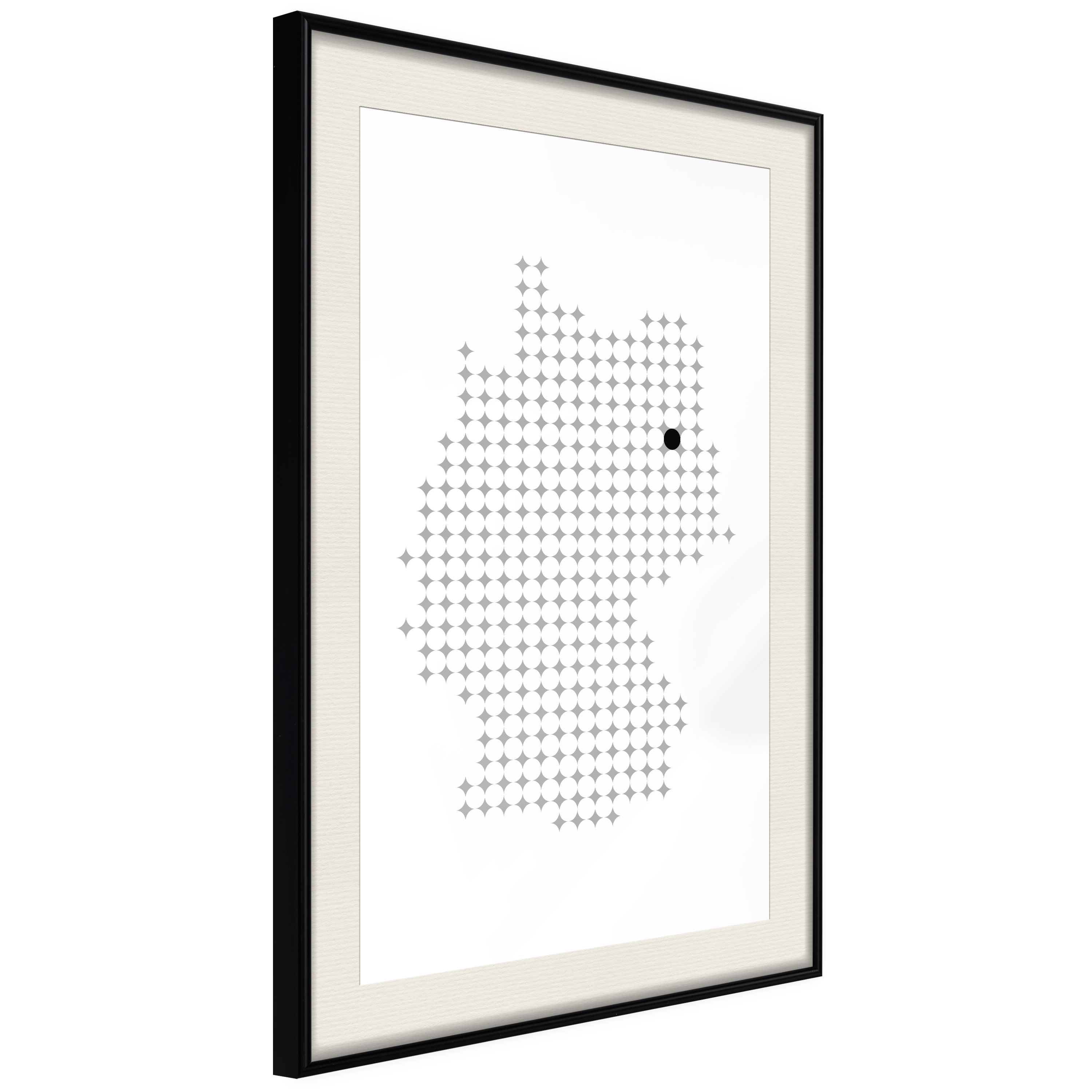 Affischen är inramad i en minimalistisk, lätt ram som gör den mer synlig mot väggen. Affischen är säkrad med akrylglas och en hänganordning finns på ramens baksida.