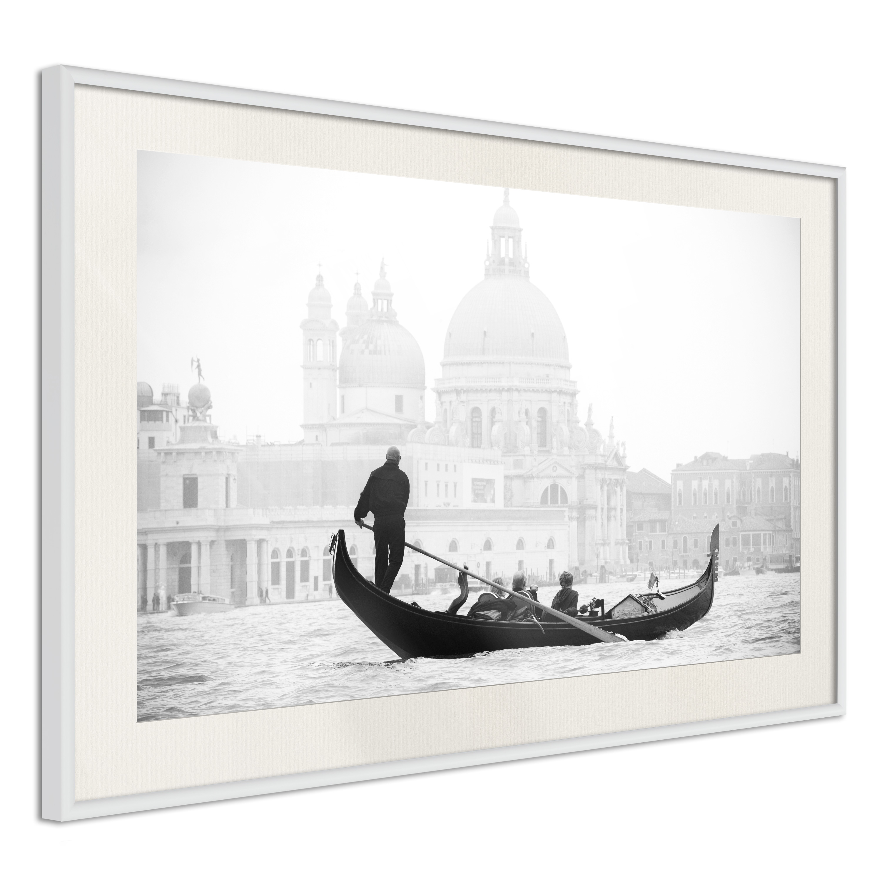 Passepartouten i écru betonar färgern på affischen och skapar en extra kontrast mellan grafiken, ramen och väggen. Dessutom ger den ramen ett svagt tredimensionellt intryck och fungerar även som ett skyddslager som ytterligare skyddar afischen. Affischen är säkrad med akrylglas och en hänganordning finns på ramens baksida.