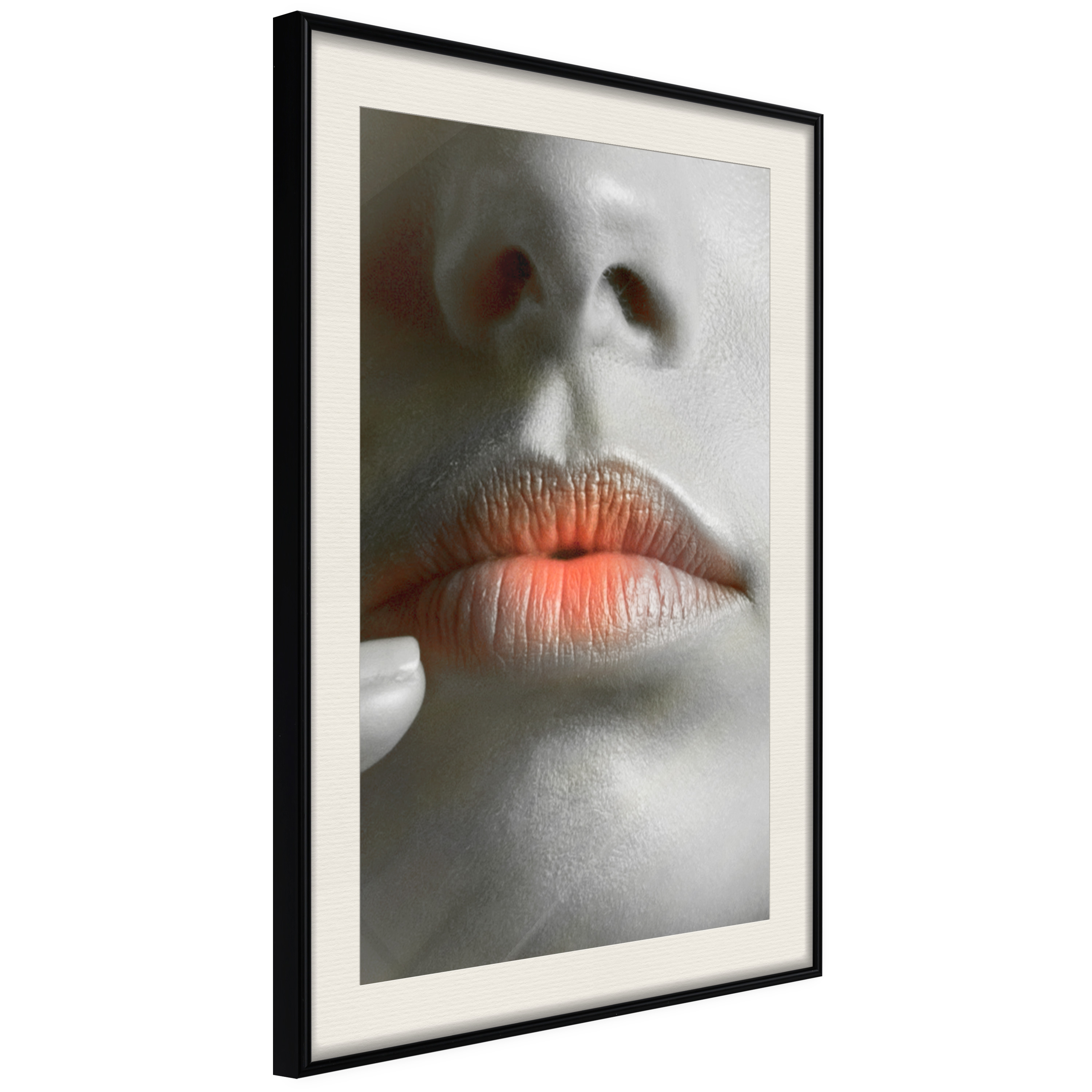 Passepartouten i écru betonar färgern på affischen och skapar en extra kontrast mellan grafiken, ramen och väggen. Dessutom ger den ramen ett svagt tredimensionellt intryck och fungerar även som ett skyddslager som ytterligare skyddar afischen. Affischen är säkrad med akrylglas och en hänganordning finns på ramens baksida.