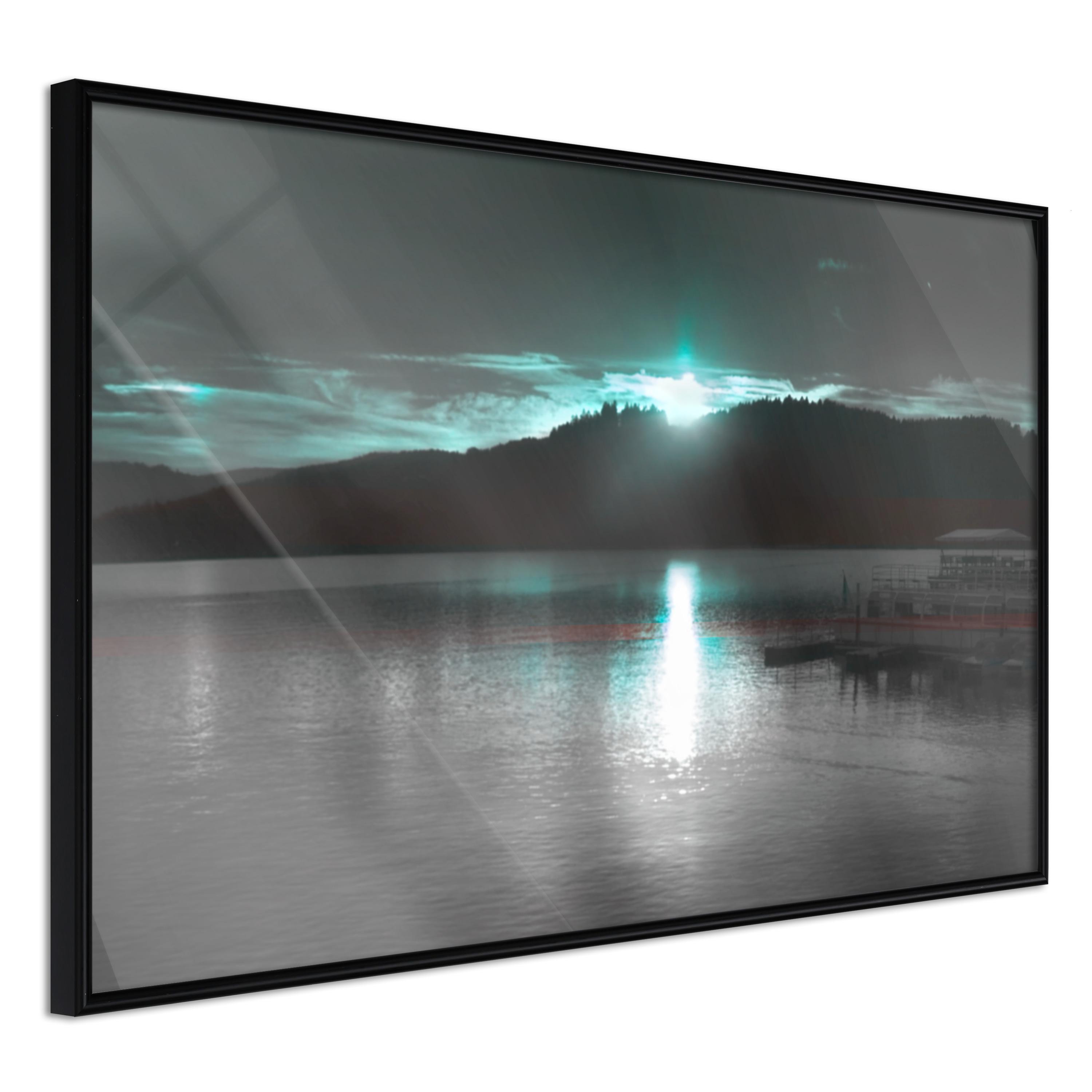 Affischen är inramad i en minimalistisk, lätt ram som gör den mer synlig mot väggen. Affischen är säkrad med akrylglas och en hänganordning finns på ramens baksida.