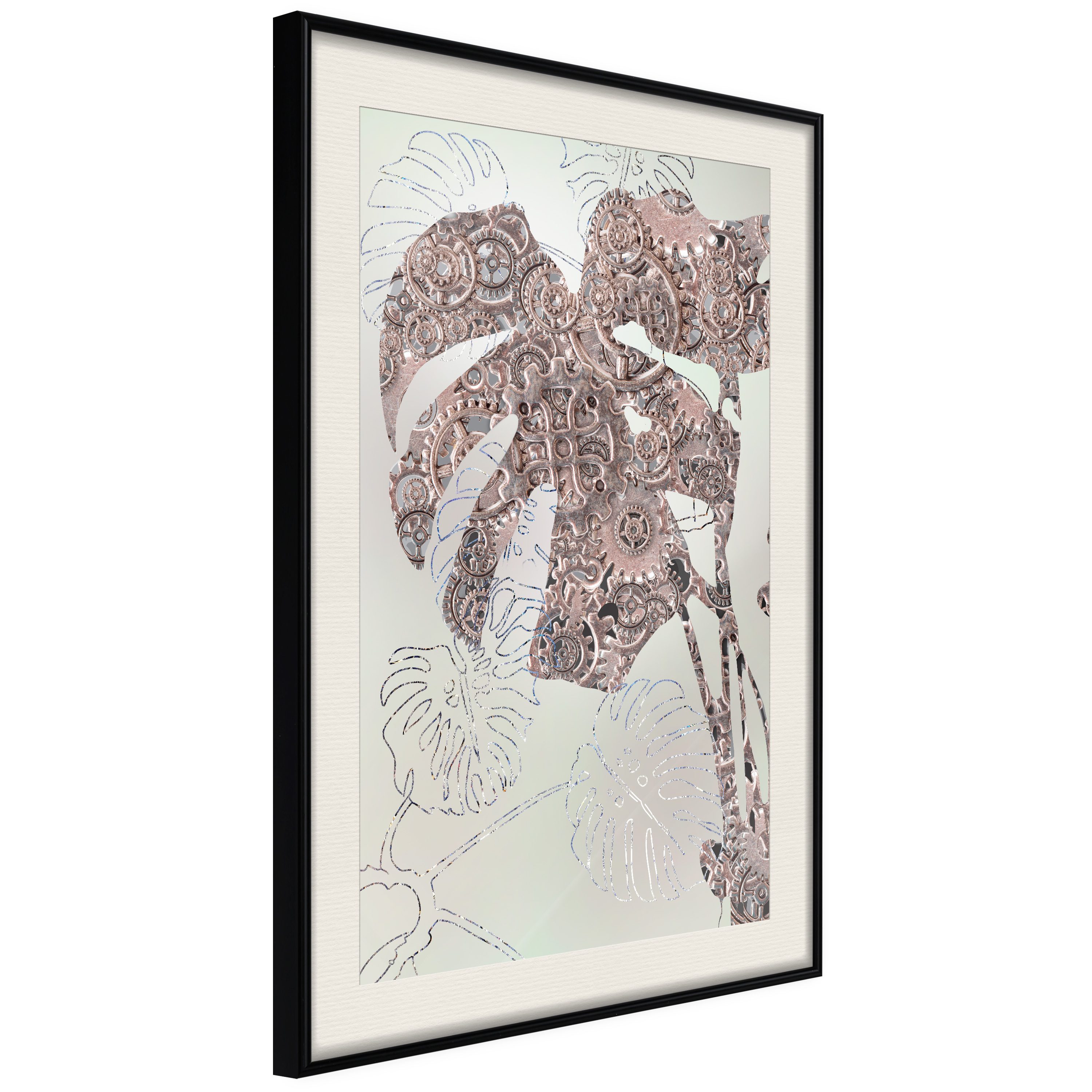 Passepartouten i écru betonar färgern på affischen och skapar en extra kontrast mellan grafiken, ramen och väggen. Dessutom ger den ramen ett svagt tredimensionellt intryck och fungerar även som ett skyddslager som ytterligare skyddar afischen. Affischen är säkrad med akrylglas och en hänganordning finns på ramens baksida.