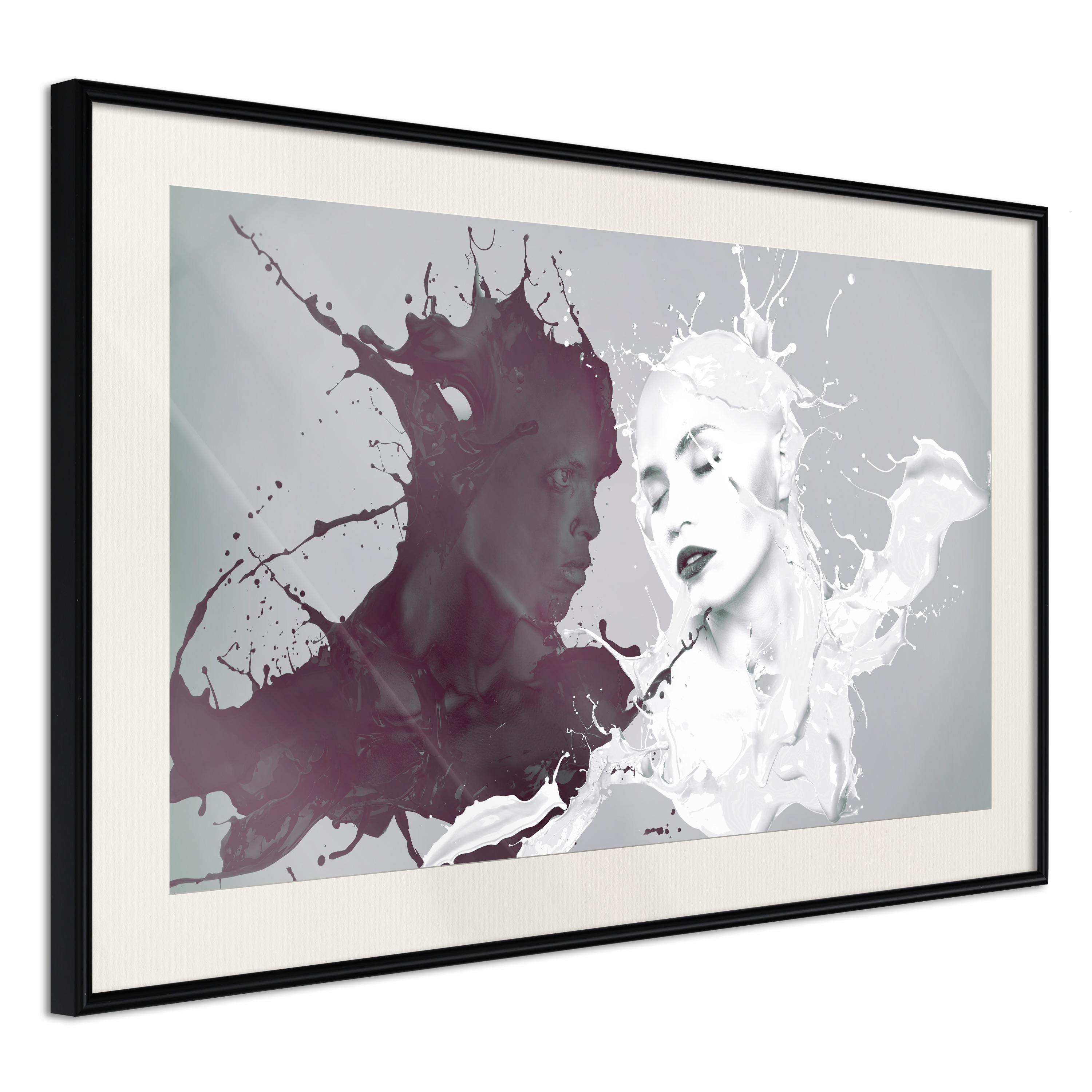 Passepartouten i écru betonar färgern på affischen och skapar en extra kontrast mellan grafiken, ramen och väggen. Dessutom ger den ramen ett svagt tredimensionellt intryck och fungerar även som ett skyddslager som ytterligare skyddar afischen. Affischen är säkrad med akrylglas och en hänganordning finns på ramens baksida.