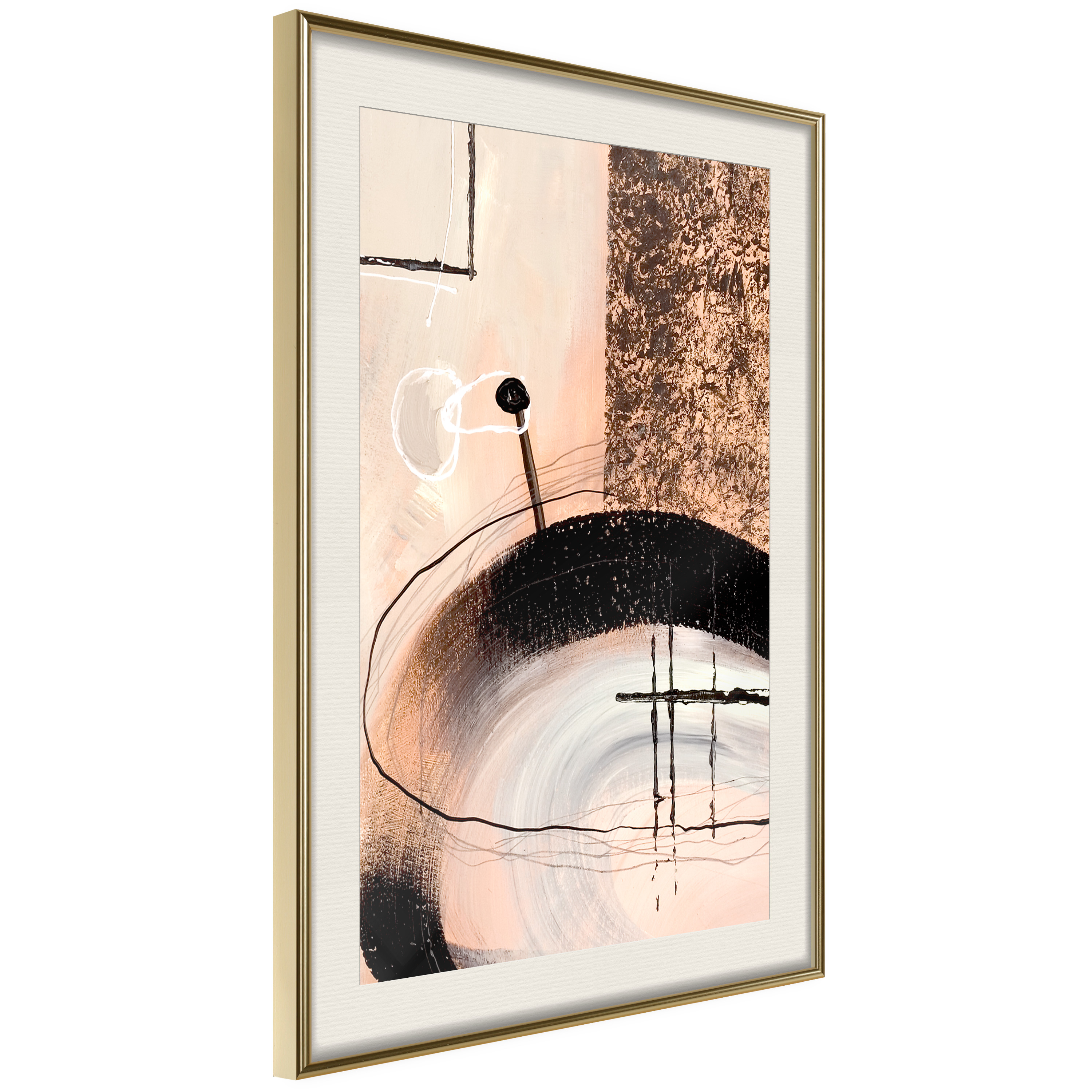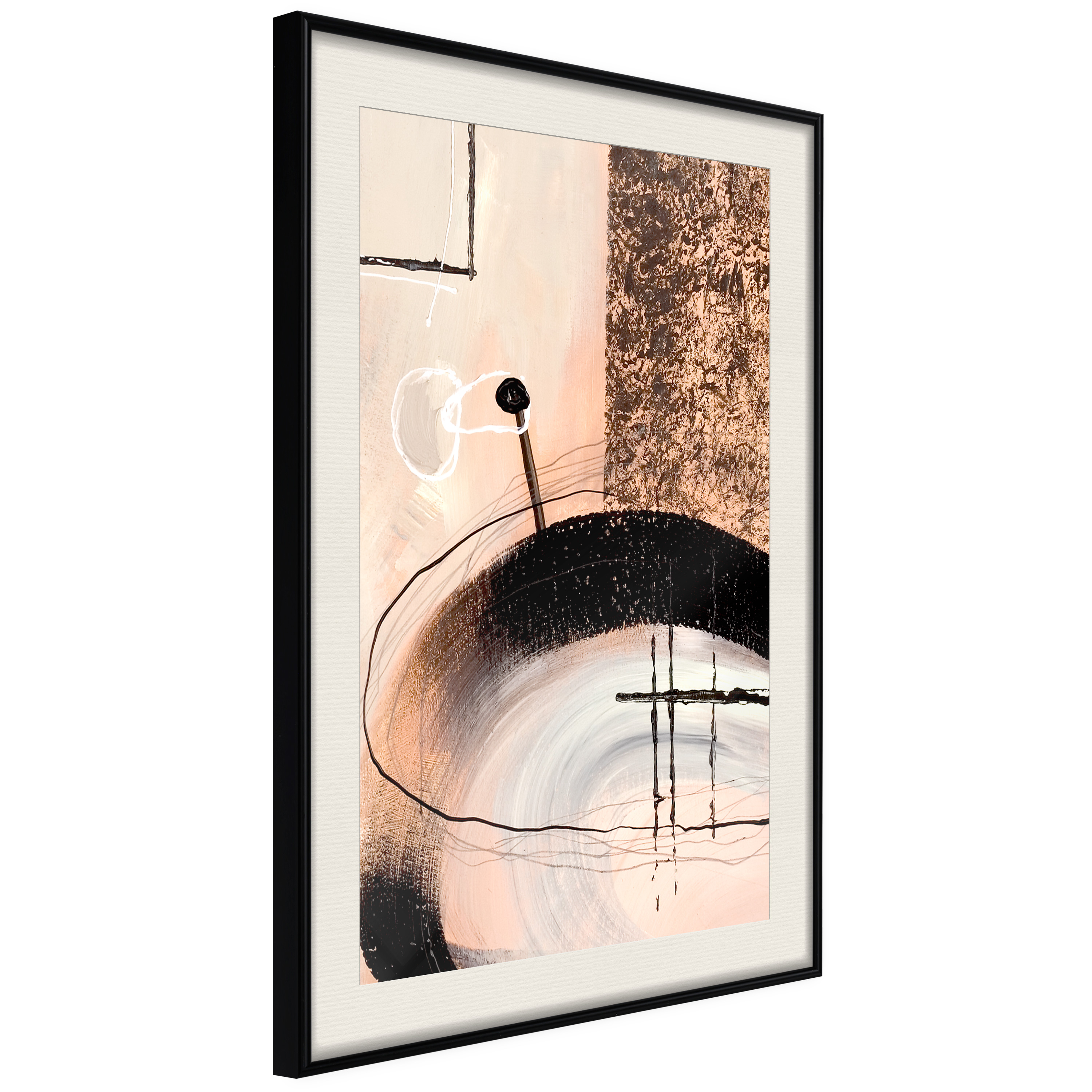Passepartouten i écru betonar färgern på affischen och skapar en extra kontrast mellan grafiken, ramen och väggen. Dessutom ger den ramen ett svagt tredimensionellt intryck och fungerar även som ett skyddslager som ytterligare skyddar afischen. Affischen är säkrad med akrylglas och en hänganordning finns på ramens baksida.