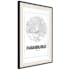 Affischen är inramad i en minimalistisk, lätt ram som gör den mer synlig mot väggen. Affischen är säkrad med akrylglas och en hänganordning finns på ramens baksida.