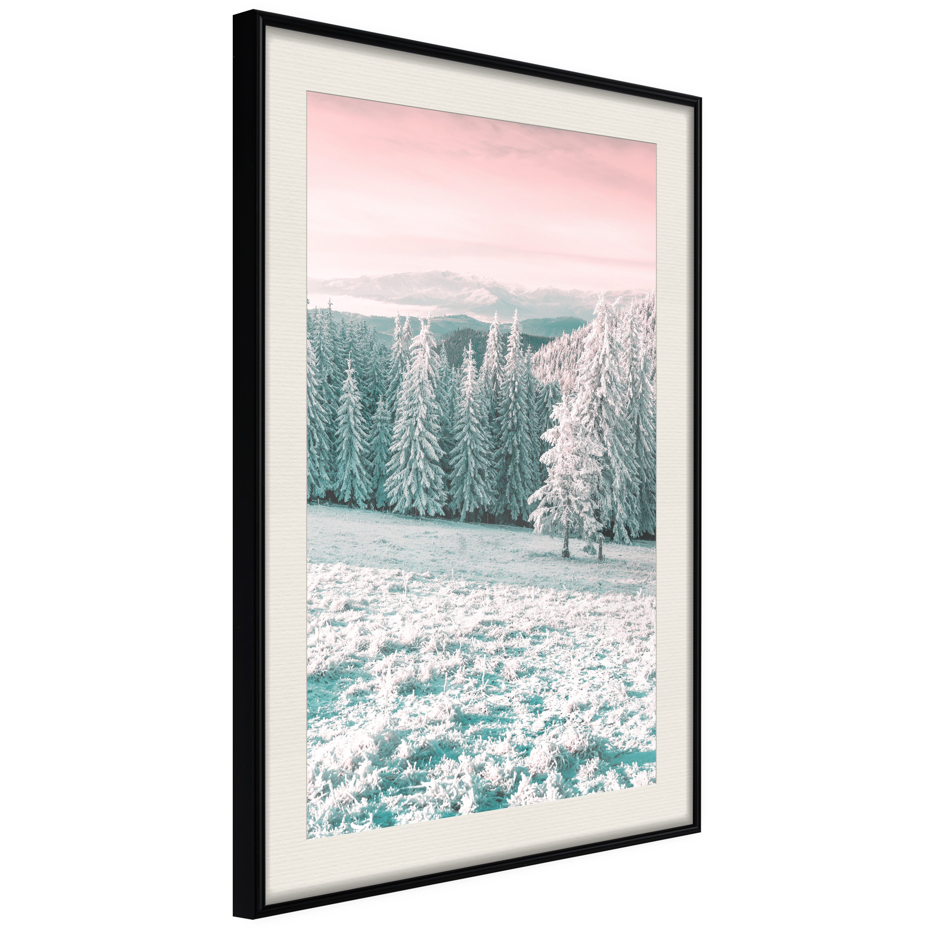 Passepartouten i écru betonar färgern på affischen och skapar en extra kontrast mellan grafiken, ramen och väggen. Dessutom ger den ramen ett svagt tredimensionellt intryck och fungerar även som ett skyddslager som ytterligare skyddar afischen. Affischen är säkrad med akrylglas och en hänganordning finns på ramens baksida.