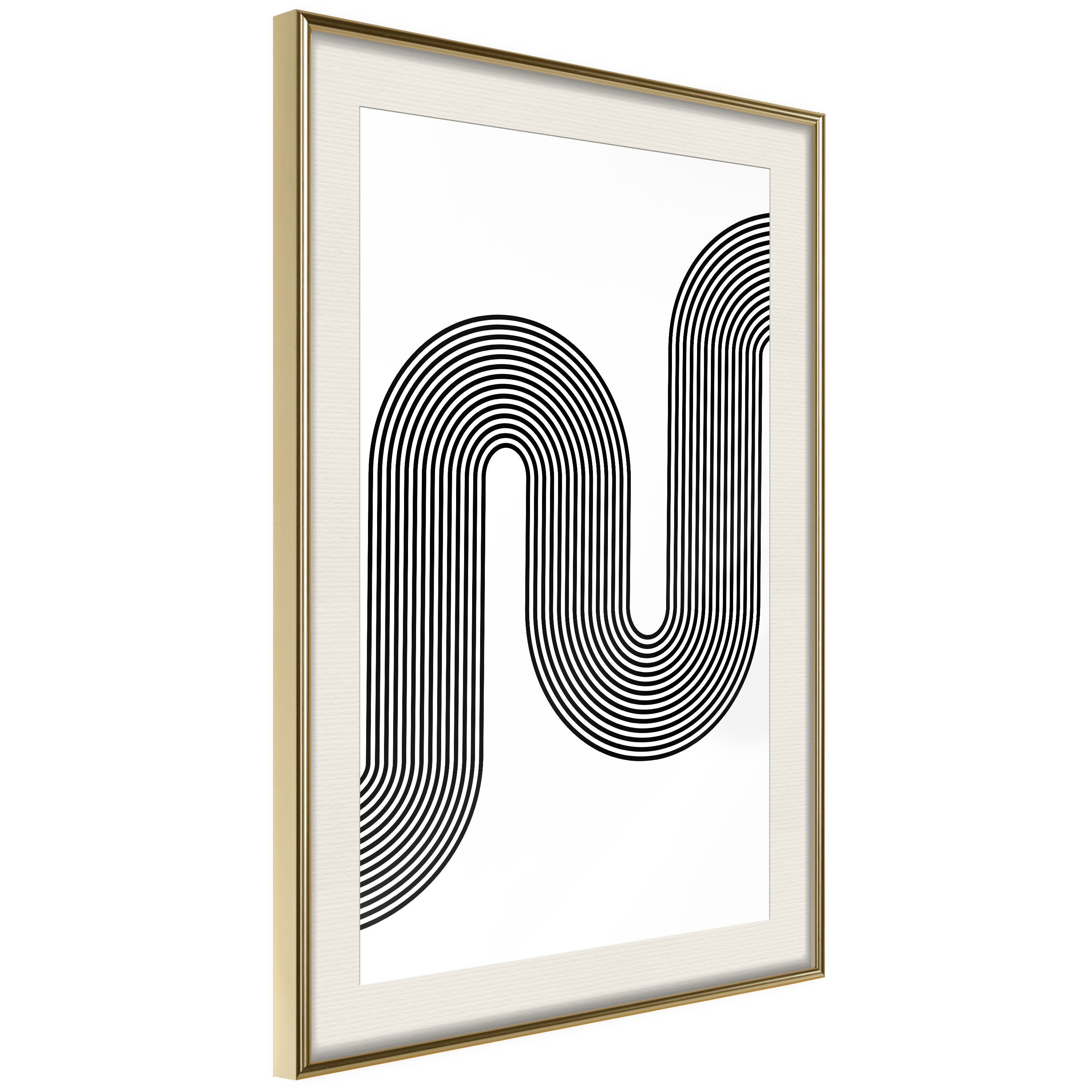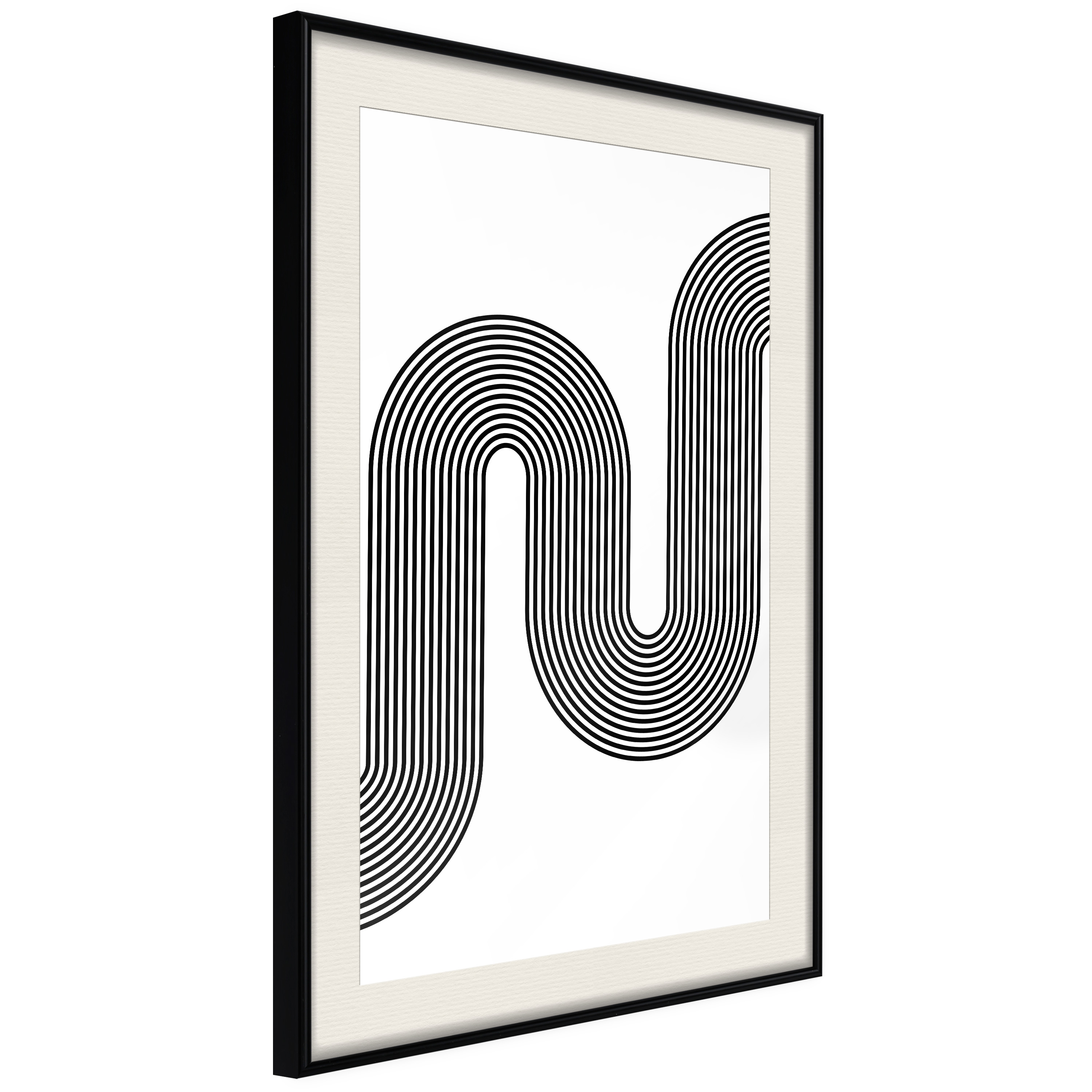 Passepartouten i écru betonar färgern på affischen och skapar en extra kontrast mellan grafiken, ramen och väggen. Dessutom ger den ramen ett svagt tredimensionellt intryck och fungerar även som ett skyddslager som ytterligare skyddar afischen. Affischen är säkrad med akrylglas och en hänganordning finns på ramens baksida.