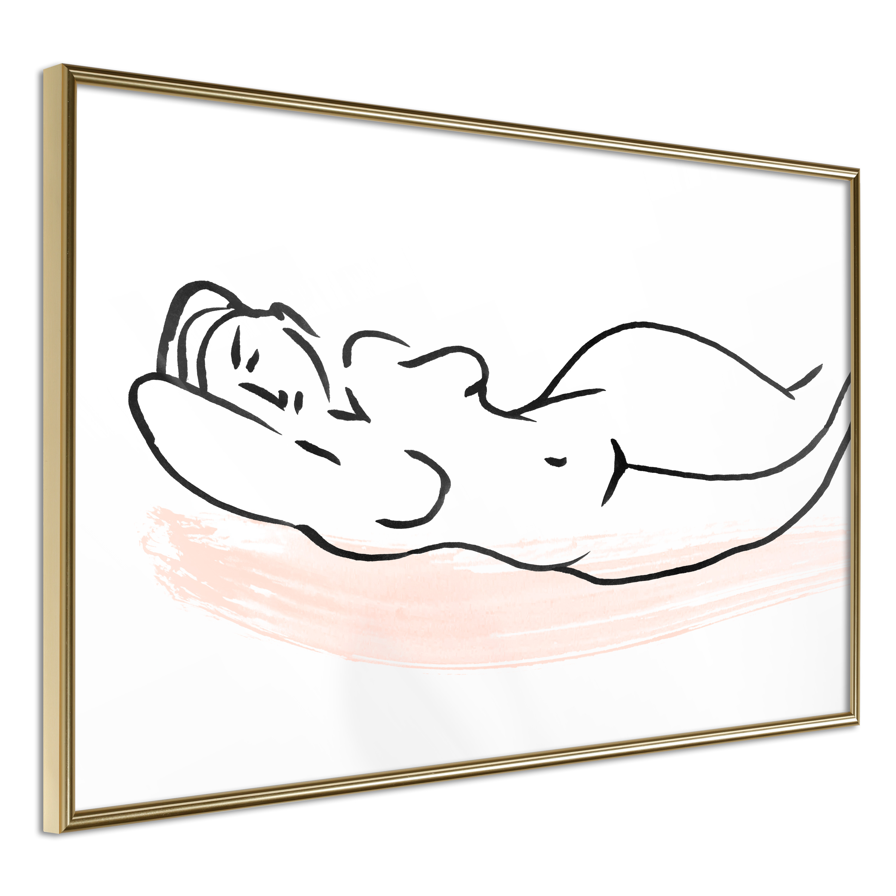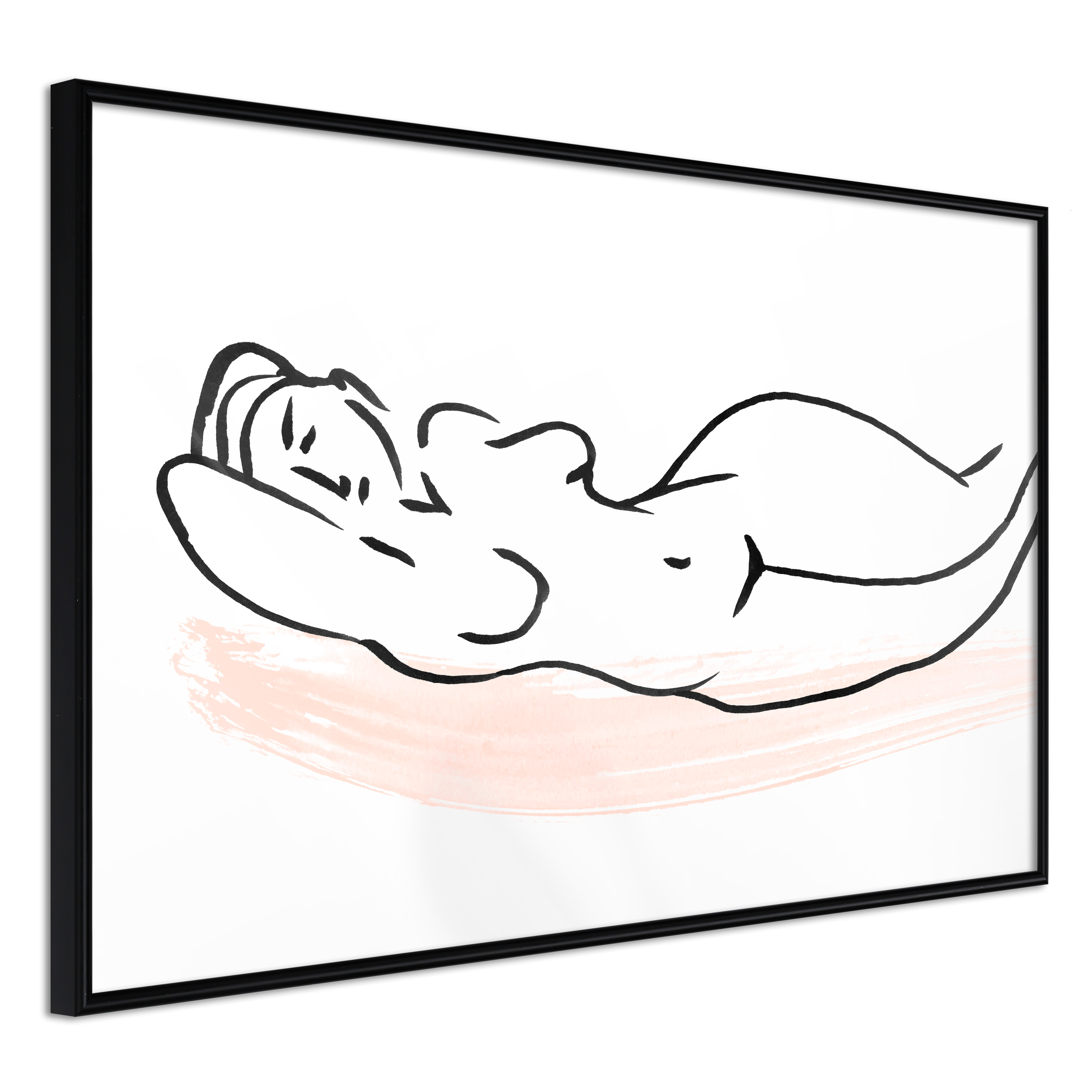 Affischen är inramad i en minimalistisk, lätt ram som gör den mer synlig mot väggen. Affischen är säkrad med akrylglas och en hänganordning finns på ramens baksida.