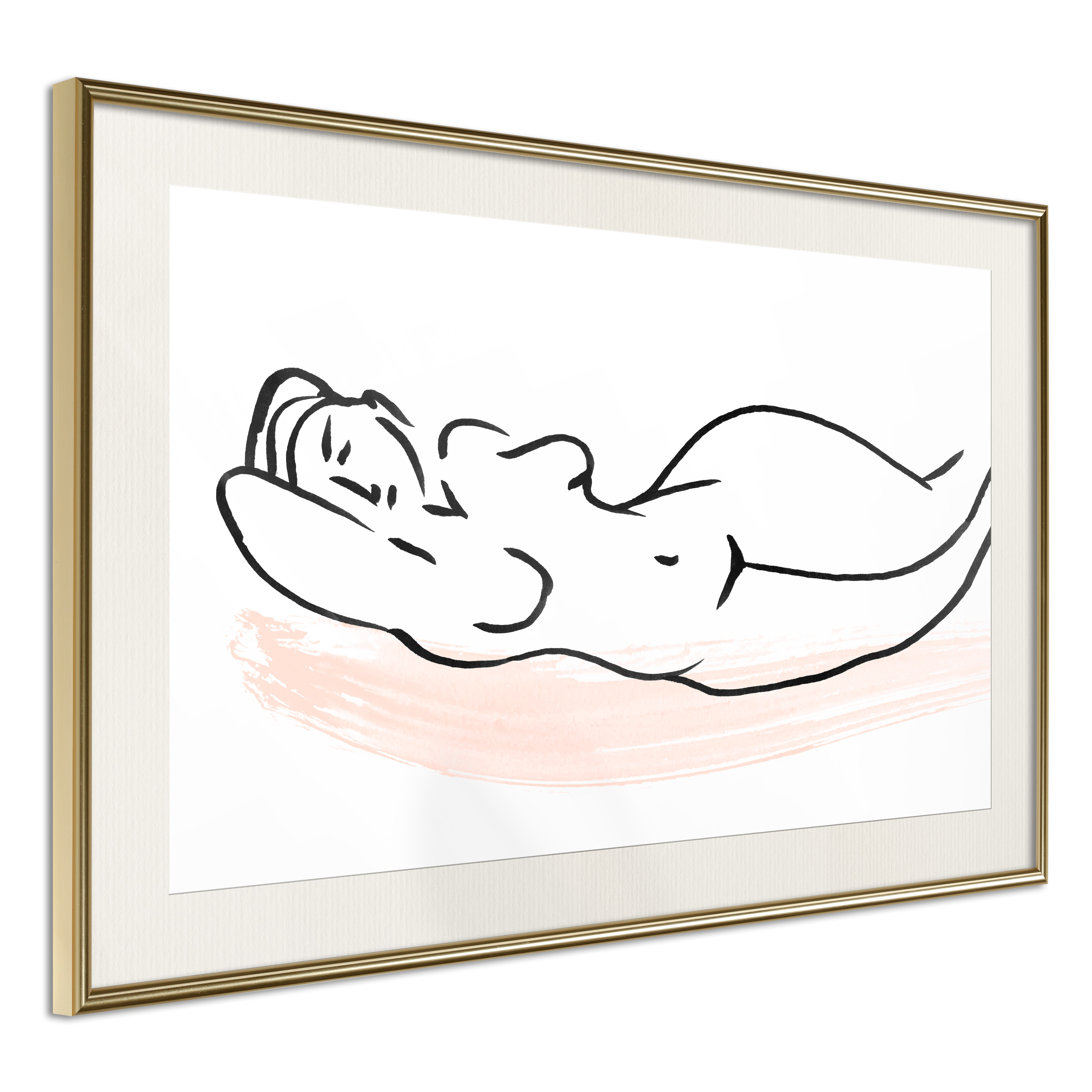 Passepartouten i écru betonar färgern på affischen och skapar en extra kontrast mellan grafiken, ramen och väggen. Dessutom ger den ramen ett svagt tredimensionellt intryck och fungerar även som ett skyddslager som ytterligare skyddar afischen. Affischen är säkrad med akrylglas och en hänganordning finns på ramens baksida.
