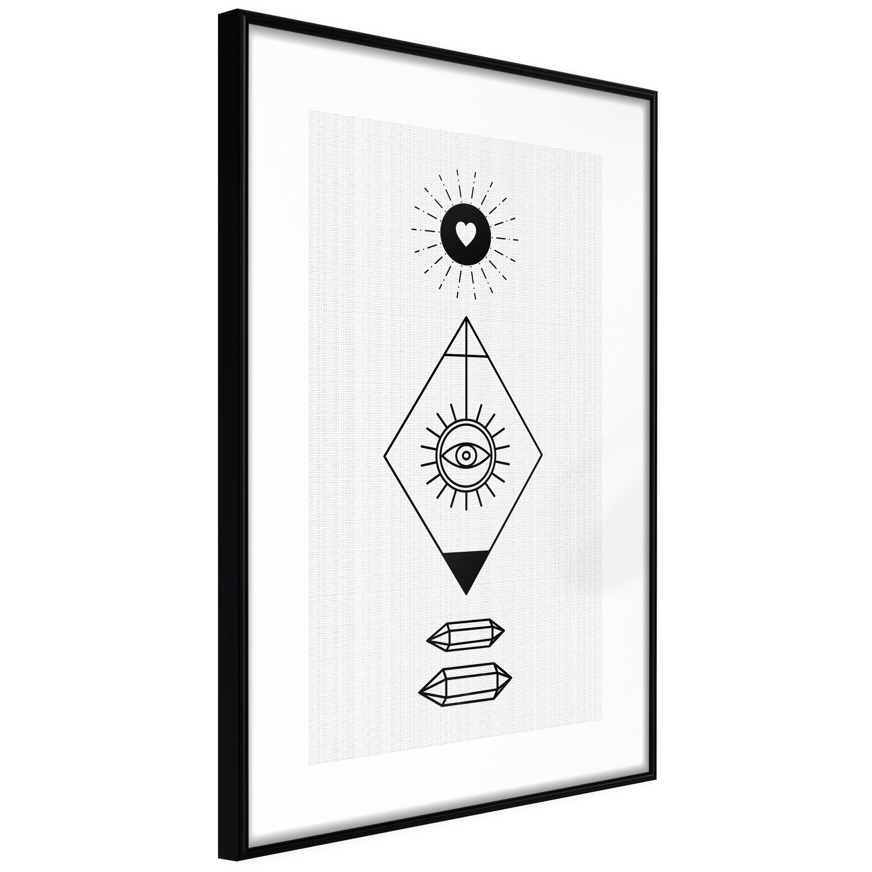 Affischen är inramad i en minimalistisk, lätt ram som gör den mer synlig mot väggen. Affischen är säkrad med akrylglas och en hänganordning finns på ramens baksida.