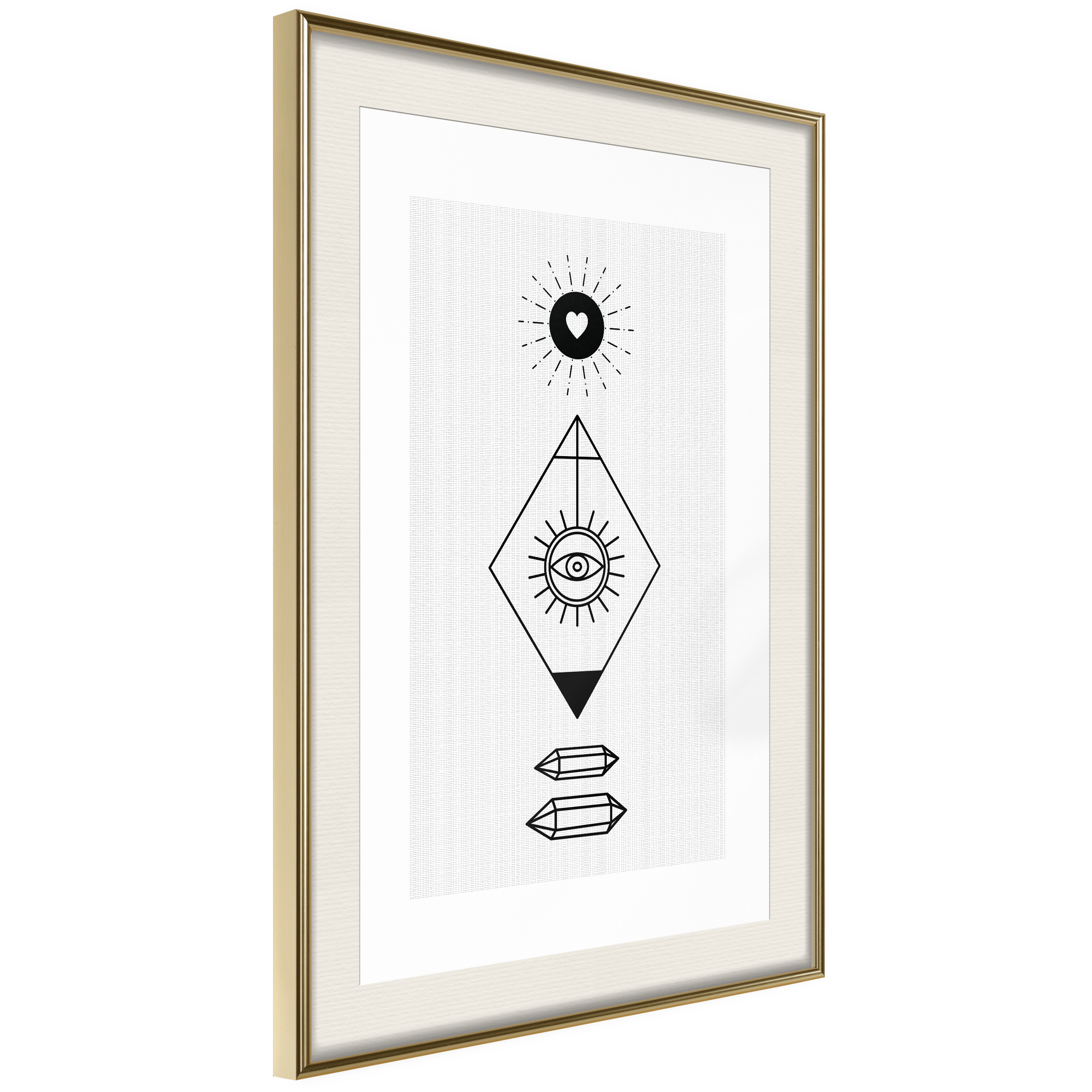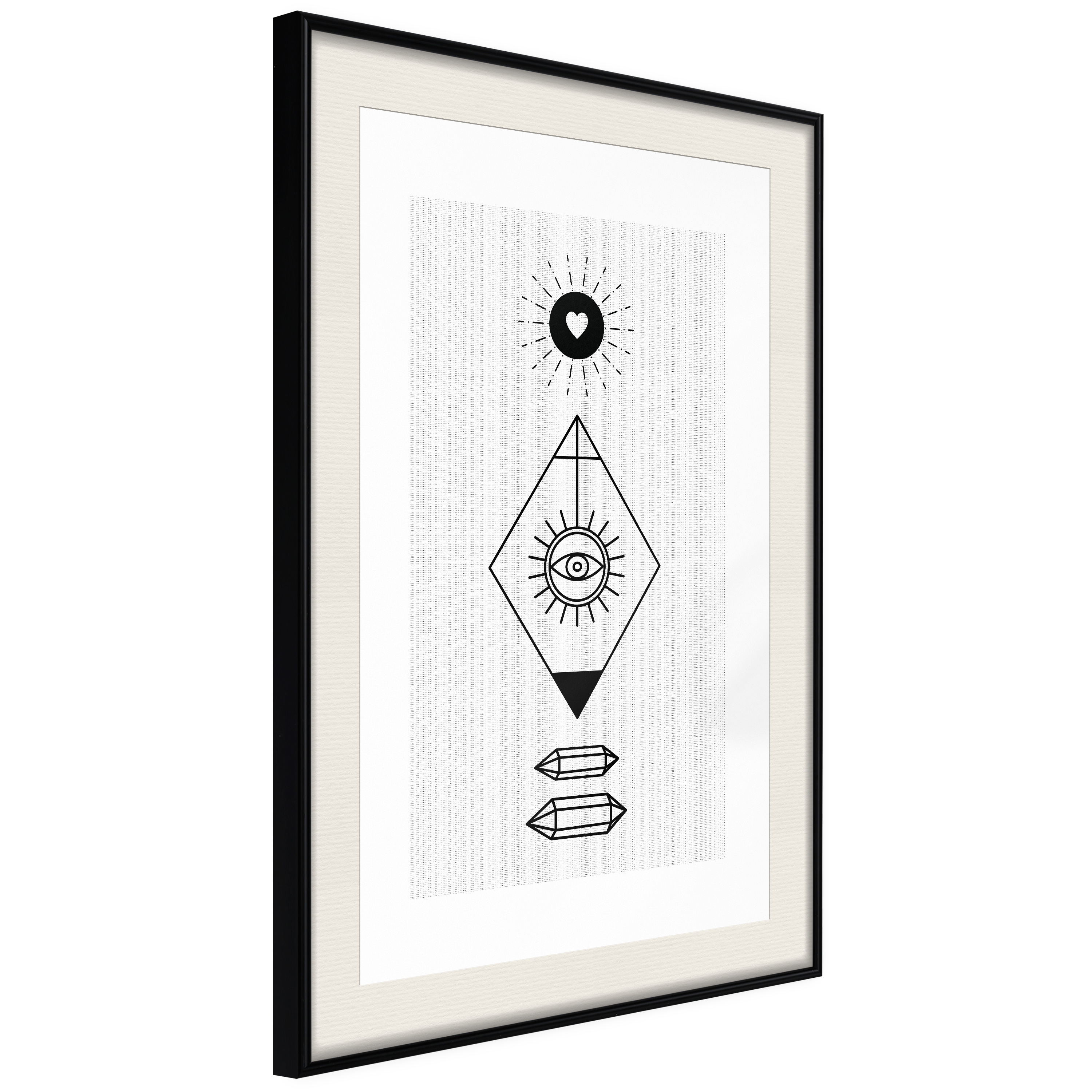 Passepartouten i écru betonar färgern på affischen och skapar en extra kontrast mellan grafiken, ramen och väggen. Dessutom ger den ramen ett svagt tredimensionellt intryck och fungerar även som ett skyddslager som ytterligare skyddar afischen. Affischen är säkrad med akrylglas och en hänganordning finns på ramens baksida.