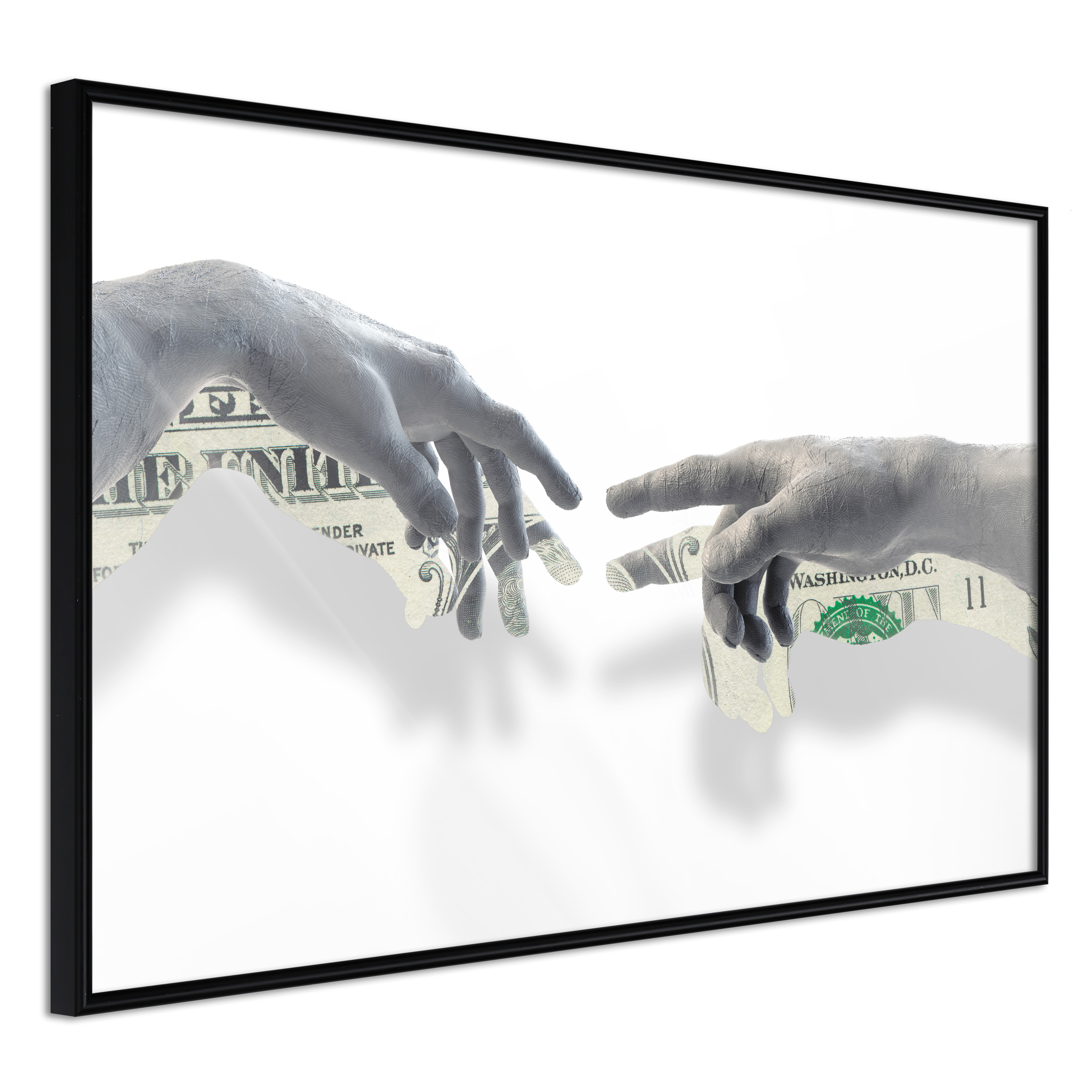 Affischen är inramad i en minimalistisk, lätt ram som gör den mer synlig mot väggen. Affischen är säkrad med akrylglas och en hänganordning finns på ramens baksida.