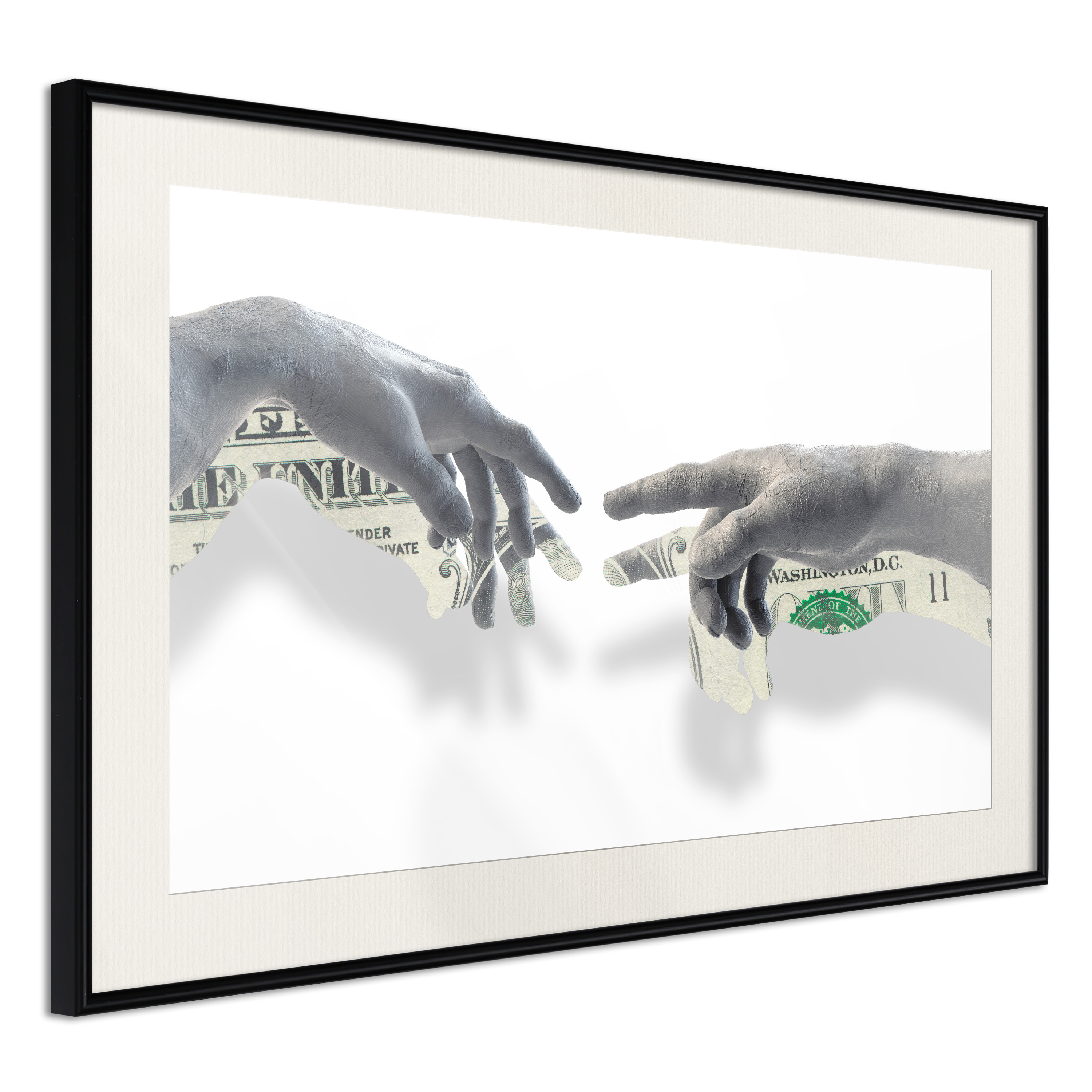 Passepartouten i écru betonar färgern på affischen och skapar en extra kontrast mellan grafiken, ramen och väggen. Dessutom ger den ramen ett svagt tredimensionellt intryck och fungerar även som ett skyddslager som ytterligare skyddar afischen. Affischen är säkrad med akrylglas och en hänganordning finns på ramens baksida.