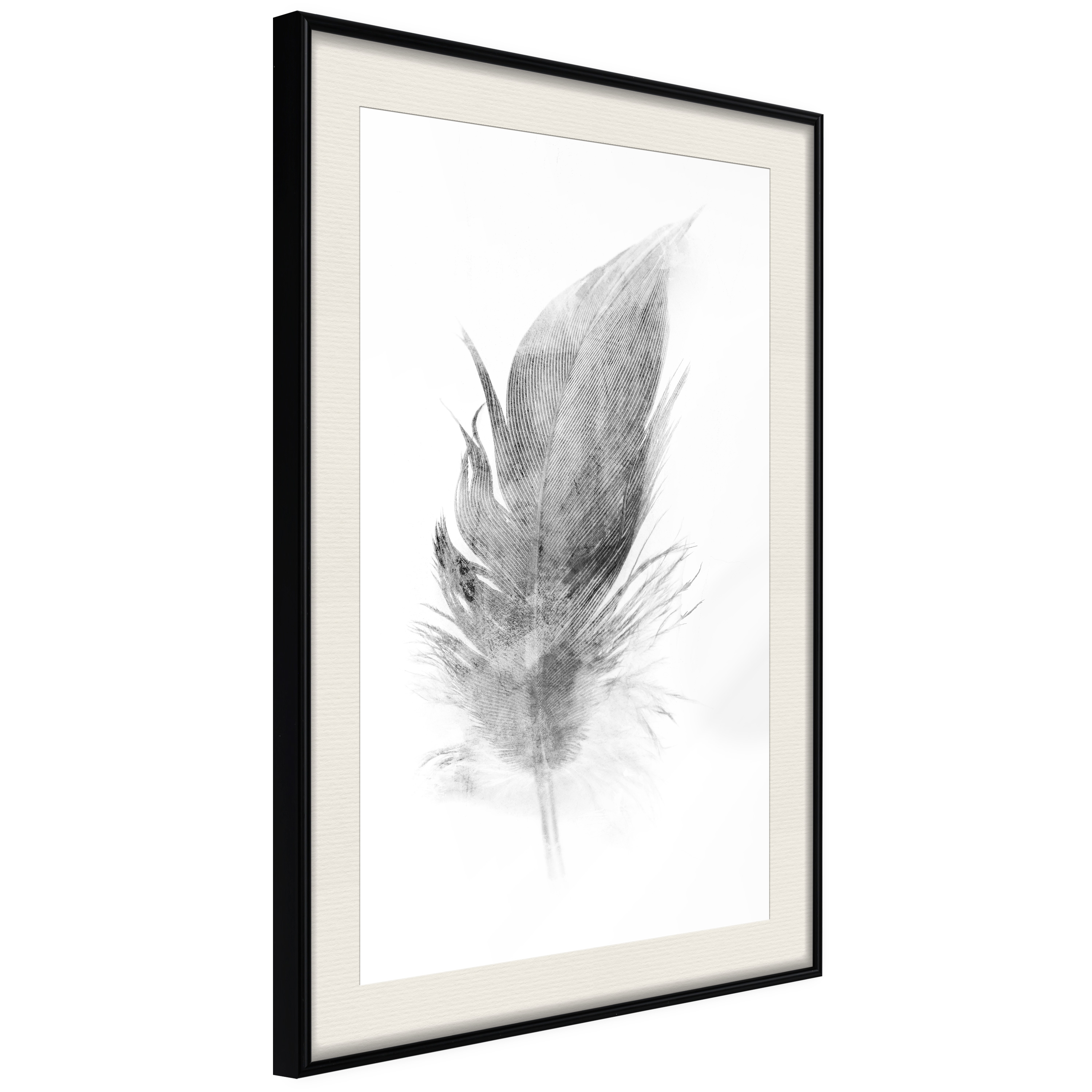 Passepartouten i écru betonar färgern på affischen och skapar en extra kontrast mellan grafiken, ramen och väggen. Dessutom ger den ramen ett svagt tredimensionellt intryck och fungerar även som ett skyddslager som ytterligare skyddar afischen. Affischen är säkrad med akrylglas och en hänganordning finns på ramens baksida.