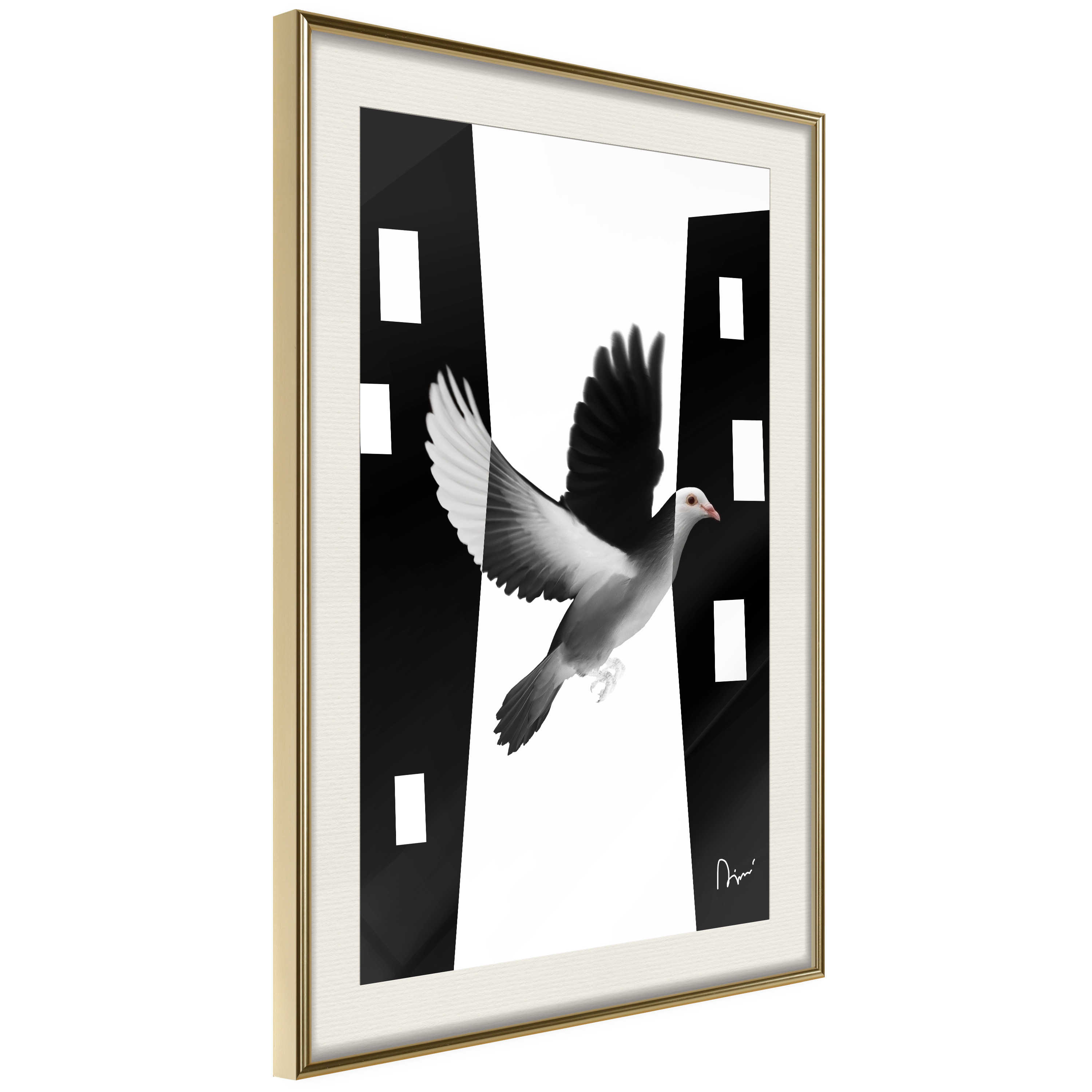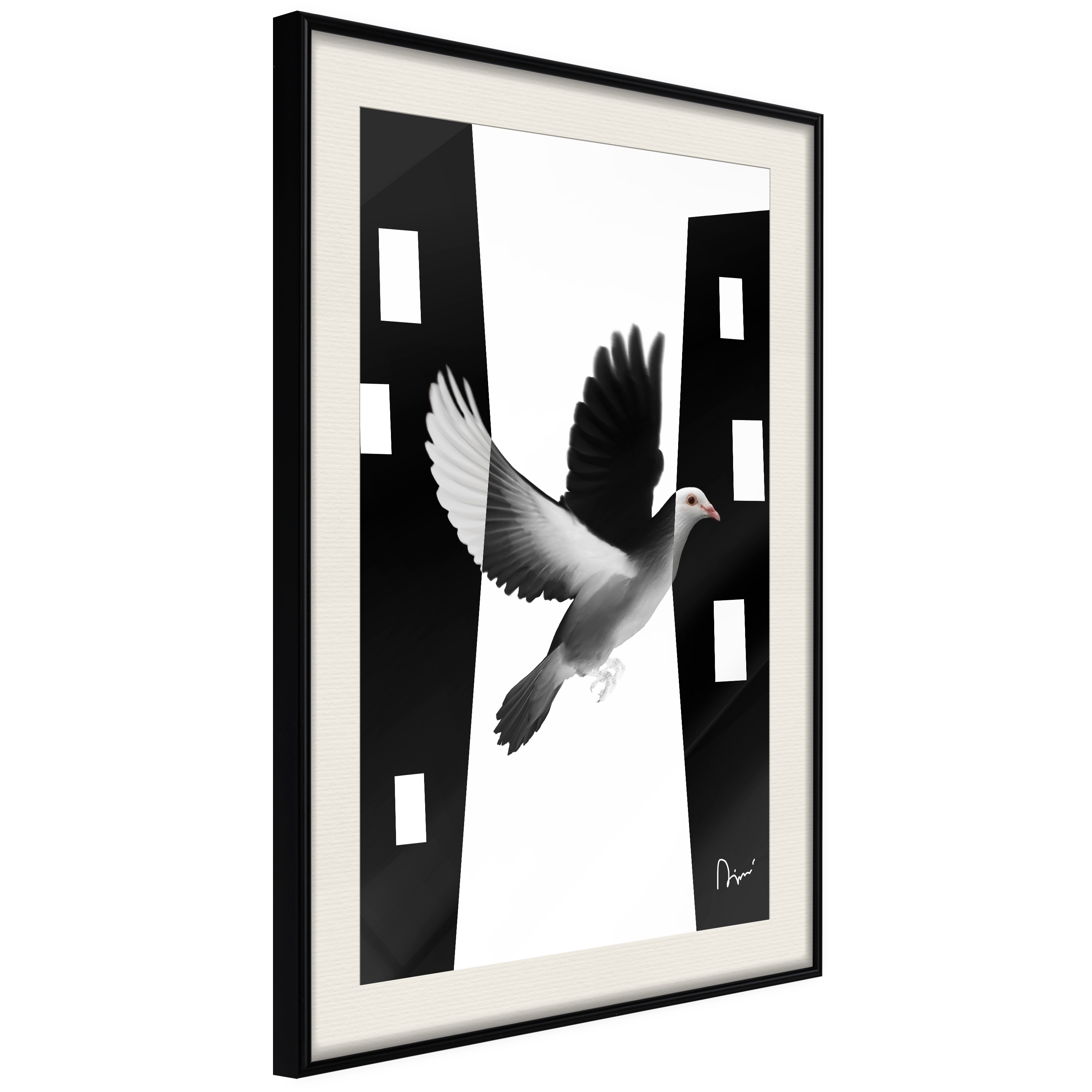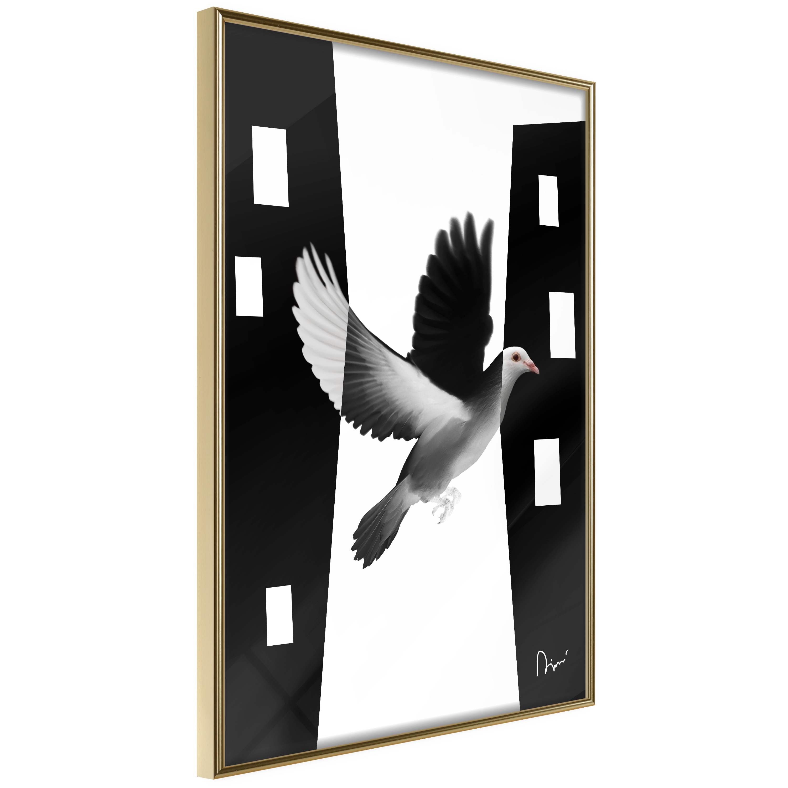 Affischen är inramad i en minimalistisk, lätt ram som gör den mer synlig mot väggen. Affischen är säkrad med akrylglas och en hänganordning finns på ramens baksida.