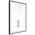 Affischen är inramad i en minimalistisk, lätt ram som gör den mer synlig mot väggen. Affischen är säkrad med akrylglas och en hänganordning finns på ramens baksida.