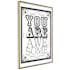 Affischen är inramad i en minimalistisk, lätt ram som gör den mer synlig mot väggen. Affischen är säkrad med akrylglas och en hänganordning finns på ramens baksida.