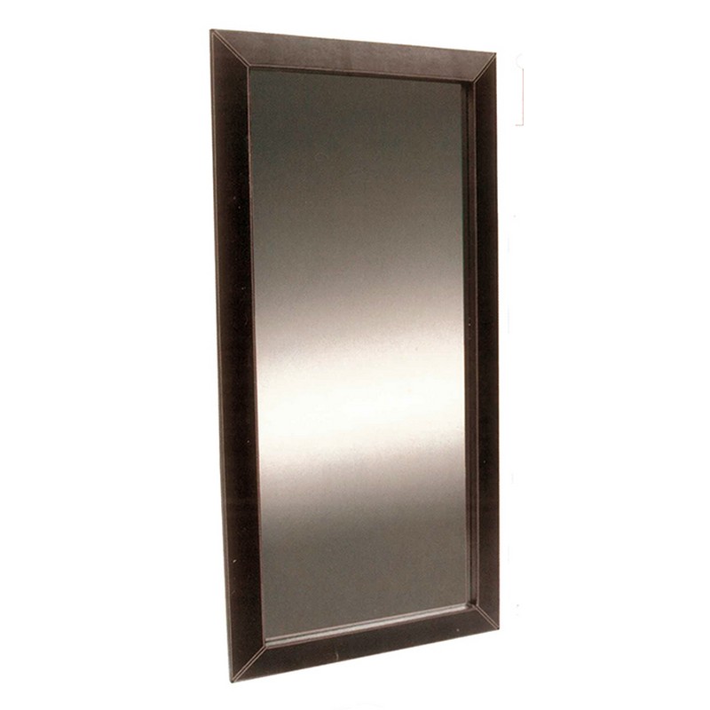 Sara spegel med en brun ram i kroko-tyg.