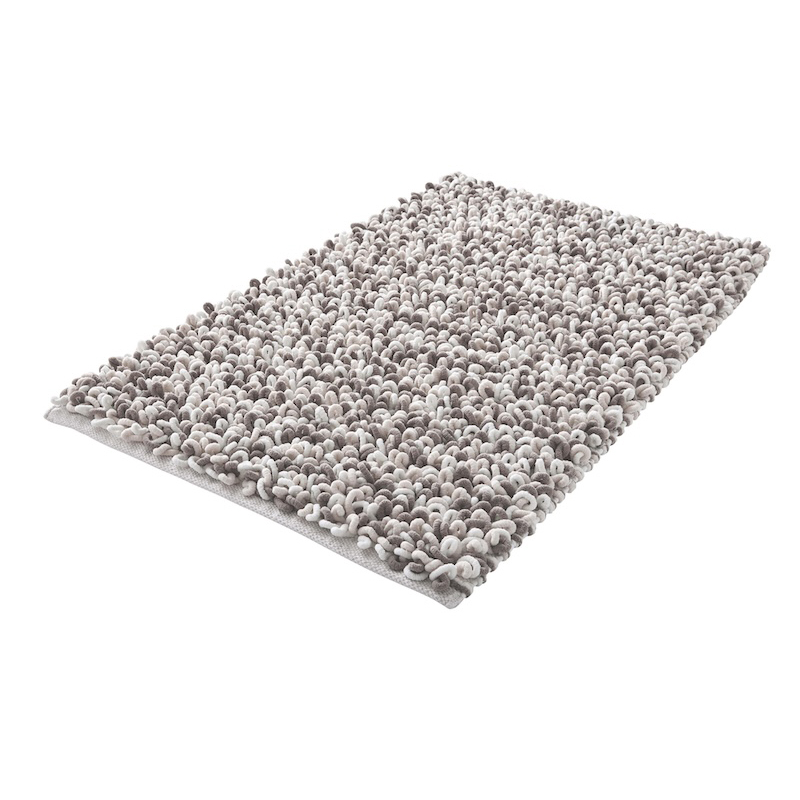 Badrumsmatta Kleine Wolke Sling i 65% polyester/35% bomull har en undersida med halkskydd och är anpassad för golvvärme. Denna handgjorda badrumsmatta utmärker sig med sin trendiga design och är en del av Kleine Wolkes Eco Care-sortiment.