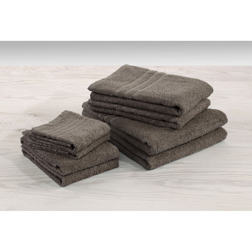 Slät frotté från Borganäs of Sweden med snygga vävda bårder. Finns i olika färger.