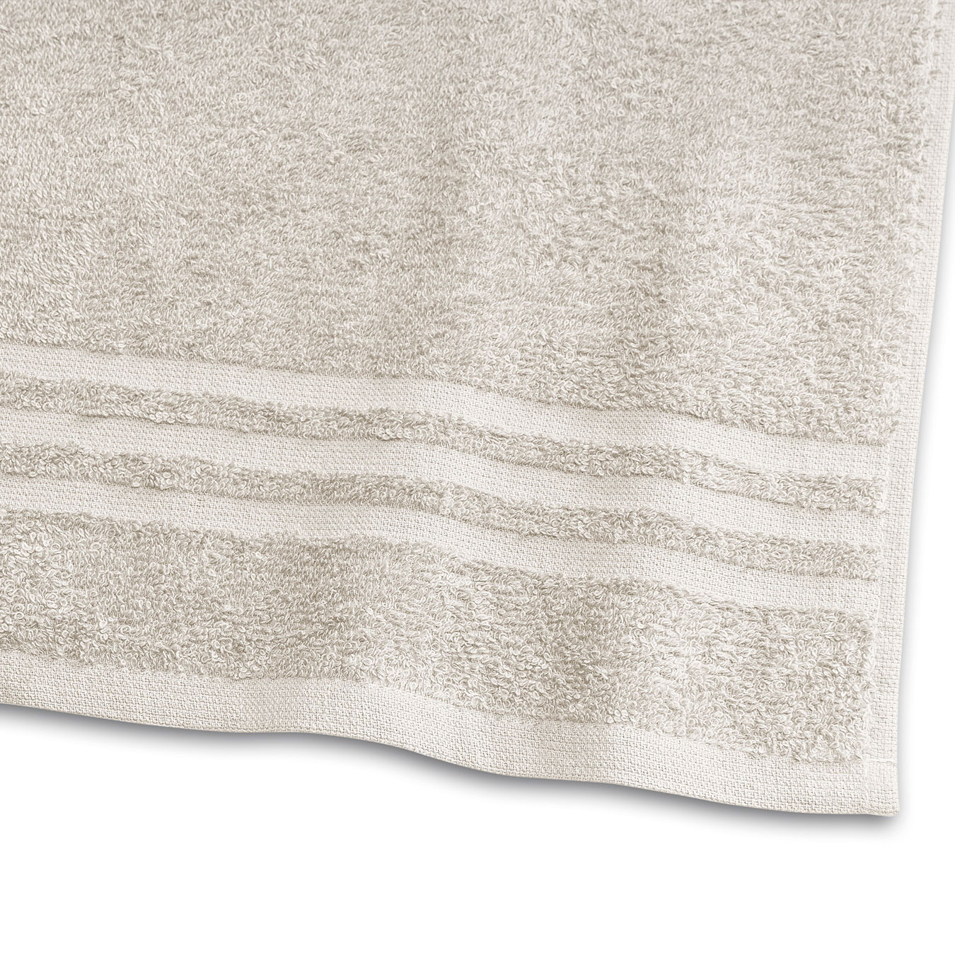 Borganäs Basic frotté är en slät öglefrotté. Handduken har hängare på kortsidorna samt ett klassiskt mönster i form av vävda bårder nedtill. Basic frotté har god absorptionsförmåga.