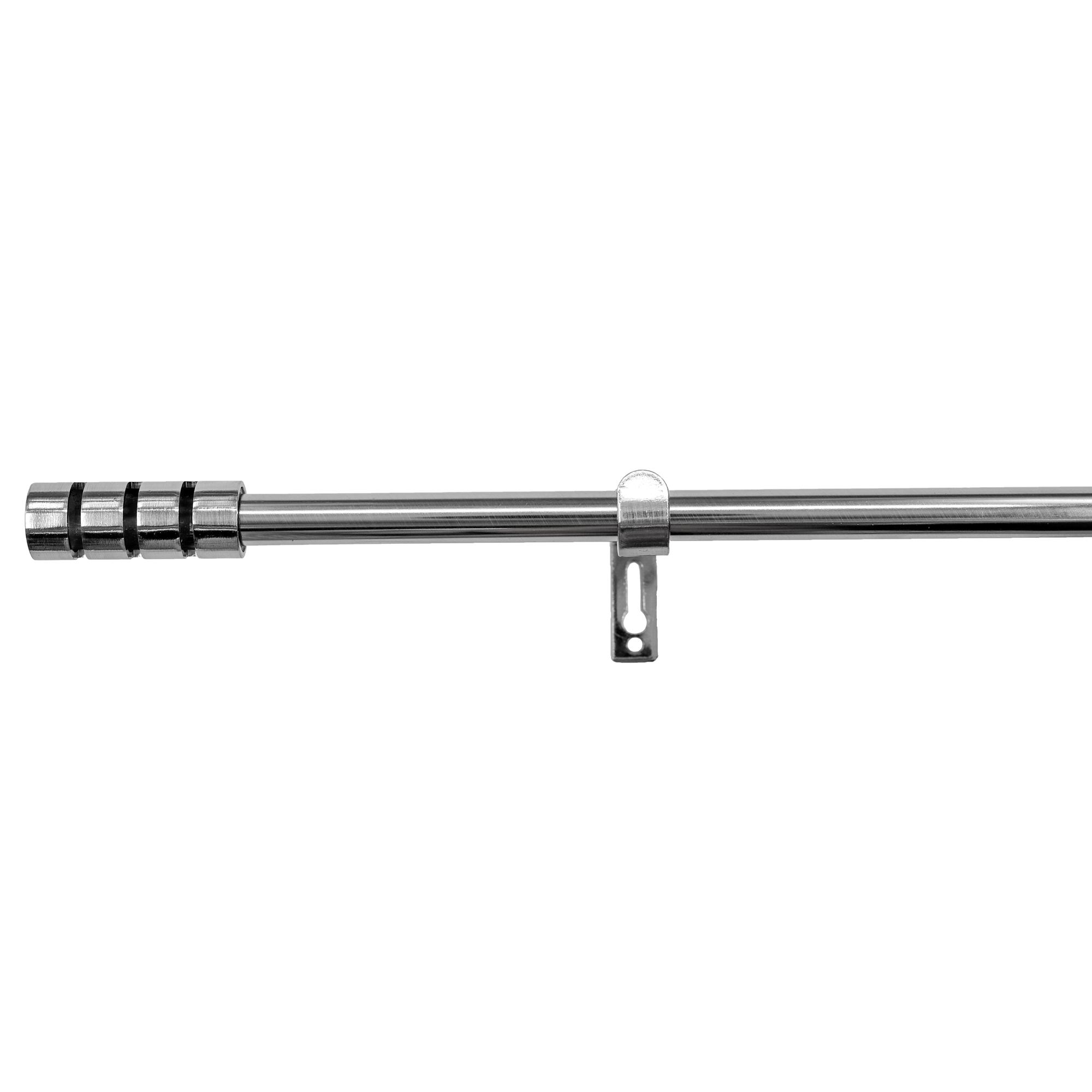 Dekorativt gardinstångset innehållande stång, änddekorer och 2 hållare. Hållarna är reglerbara från 10-15 cm och monteras på vägg med plugg och skruv.