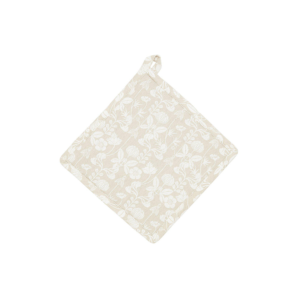 Grytlappen i bomullsväv med tryckt mönster av Carl Larsson. Mönstret De mina kommer från försättningsbladet på några av Carl Larssons böcker, bland annat boken 'De mina'. Grytlappen är 22x22cm och med en ögla att hänga upp den i. Produkten är certifierad enligt STANDARD 100 by OEKO-TEX®. Certifieringen garanterar att produkten är testad och fri från ämnen som kan vara skadliga för hälsan och miljön. 100% Bomull.