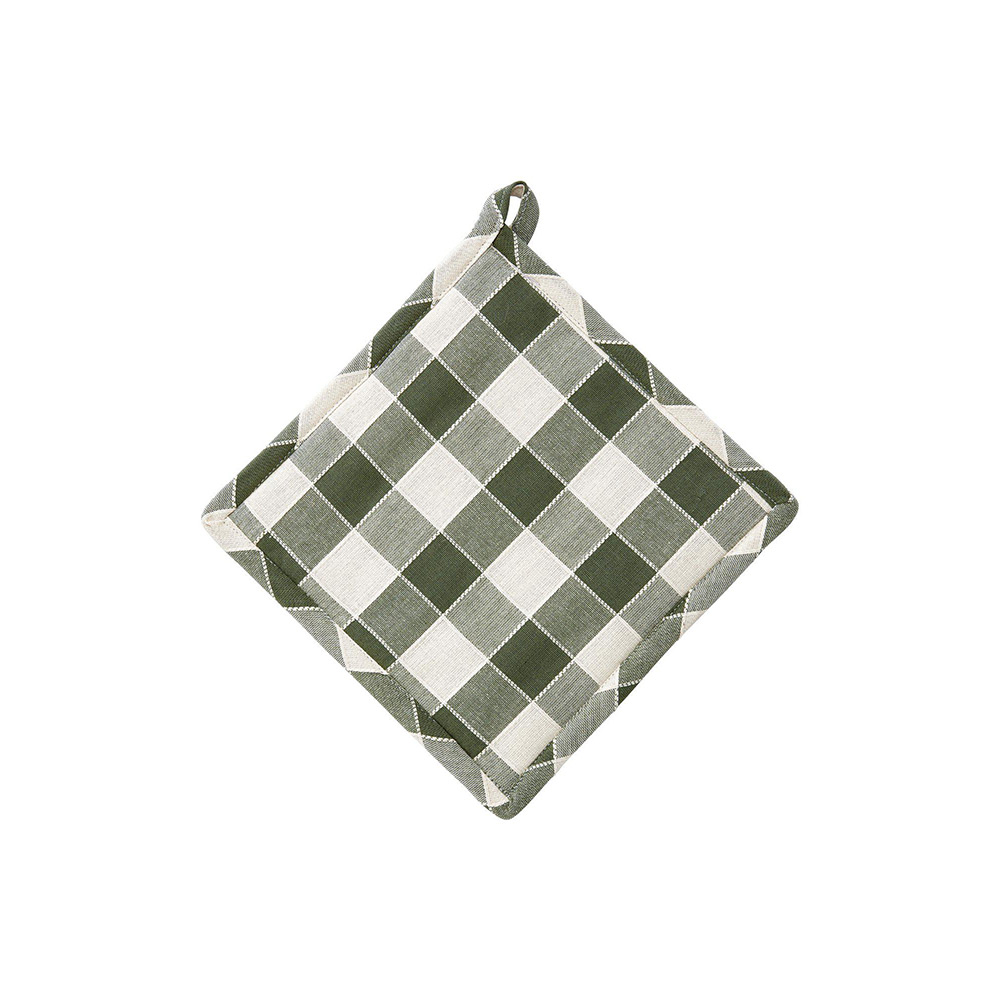 Grytlappen i bomullsväv med garnfärgad ruta och overlockade kanter. Grytlappen har en ögla att hänga upp den i. Produkten är certifierad enligt STANDARD 100 by OEKO-TEX®. Certifieringen garanterar att produkten är testad och fri från ämnen som kan vara skadliga för hälsan och miljön. 100% Bomull.