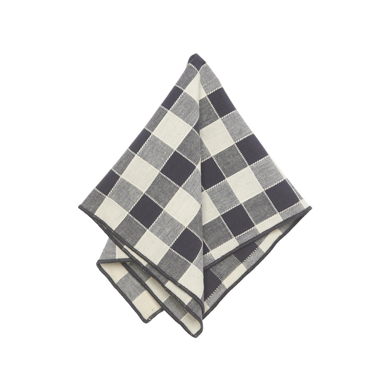 Servett med garnfärgat mönster och overlockade kanter. Att den är garnfärgad gör att servettens baksida är lika fin som dess framsida. Produkten är certifierad enligt STANDARD 100 by OEKO-TEX®. Certifieringen garanterar att produkten är testad och fri från ämnen som kan vara skadliga för hälsan och miljön. 100% Bomull.